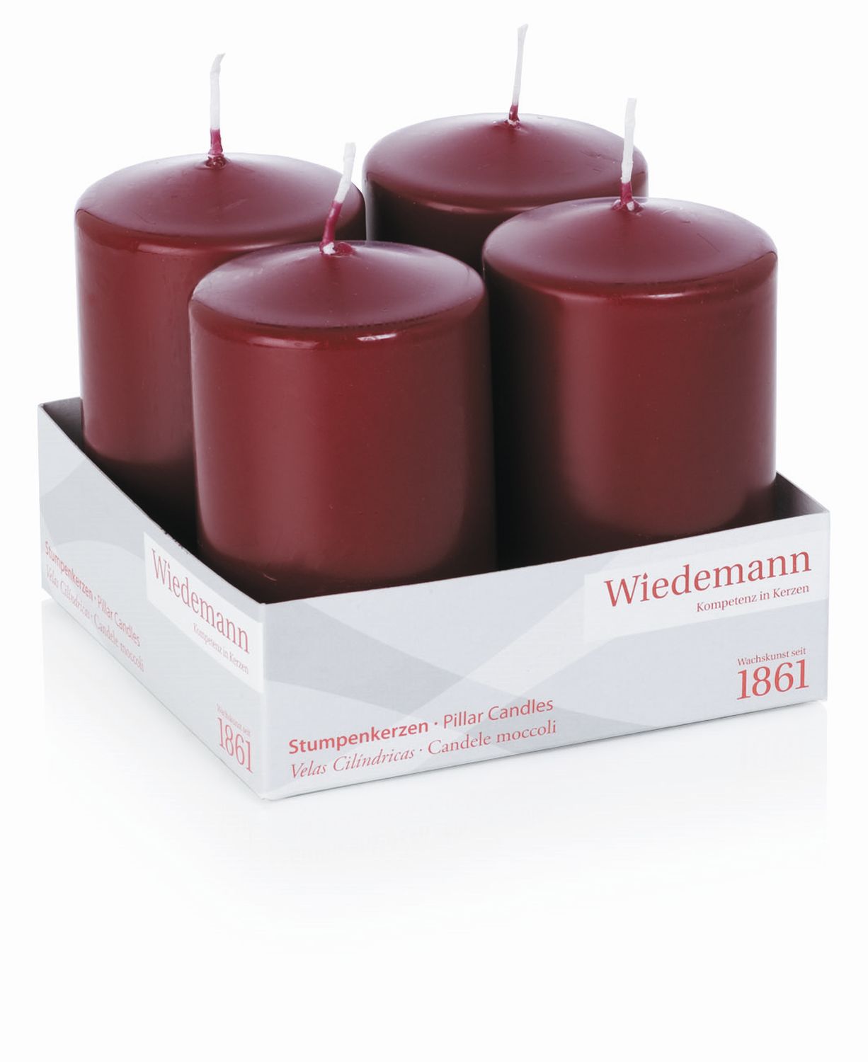Adventní svíčky JENARO, 4 kusy, bordó, 10cm, Ø6cm, 33h - Vyrobeno v Německu