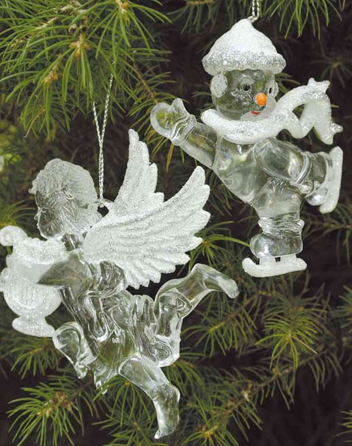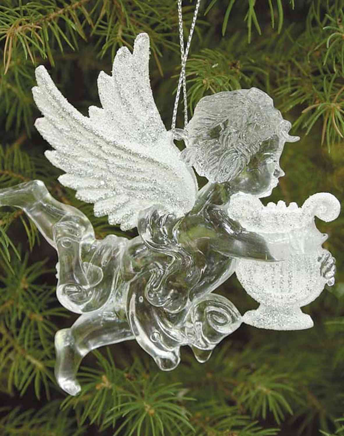 Akrylový přívěsek anděl LINDY, 2 kusy, harfa, lyra, třpytky, stříbrno-bílá, 9x10cm