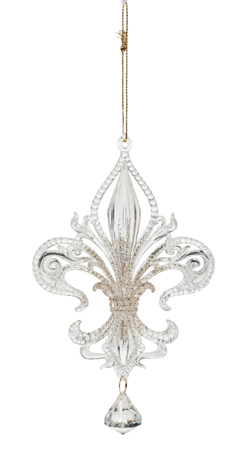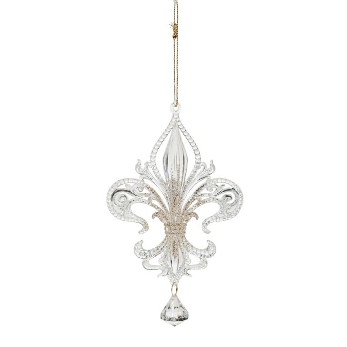 Akrylový přívěsek heraldické lilie AZARIEL, třpytky, transparentní zlatá, 15cm