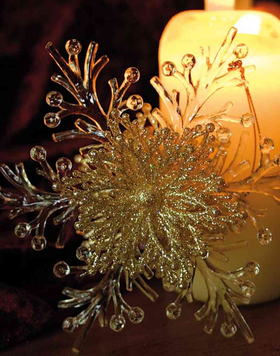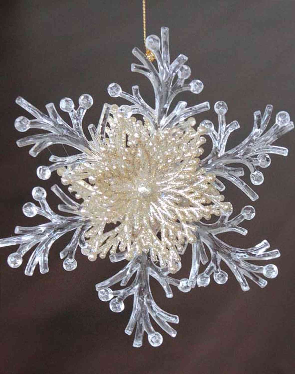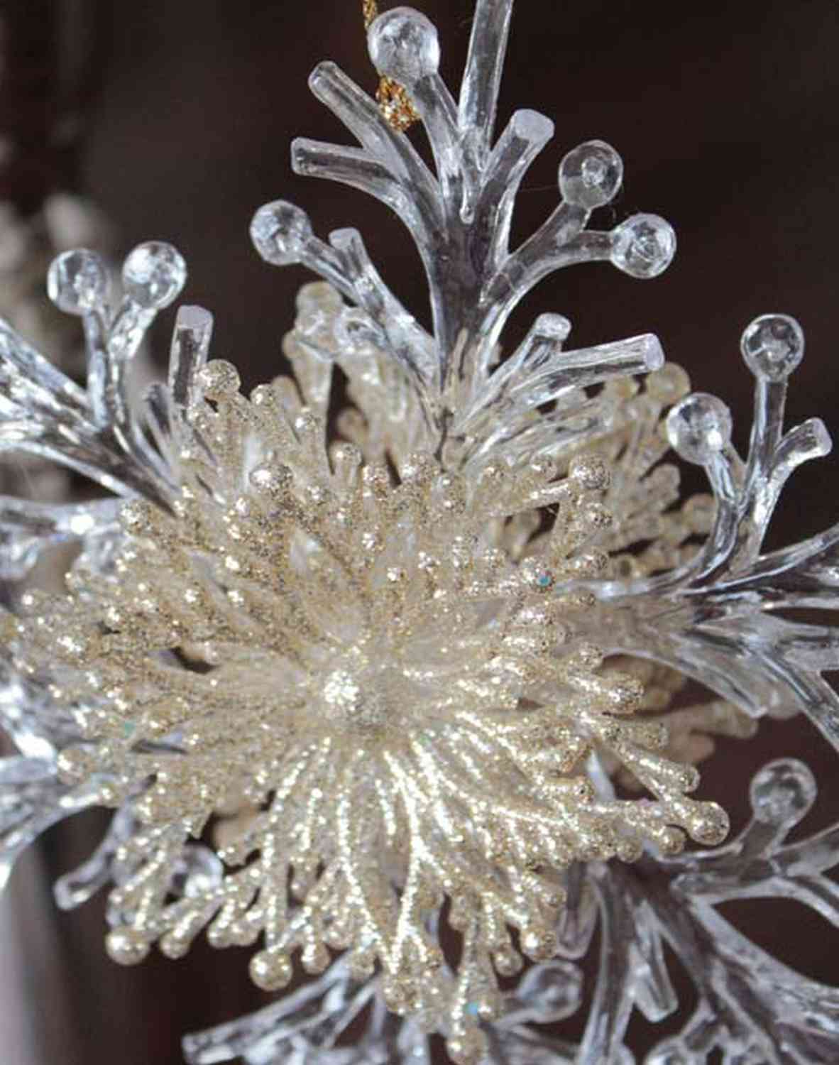 Akrylový přívěsek sněhová vločka BALADI, třpytky, průhledná-zlatá, Ø15cm.