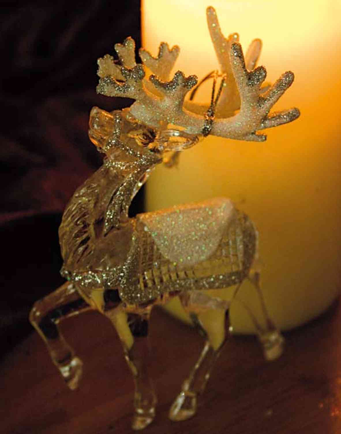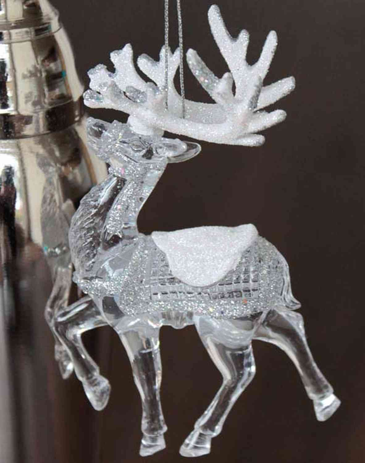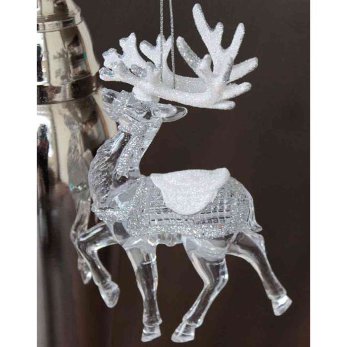 Akrylový závěs jelen MATTHIS, třpytky, průhledný-stříbrno-bílý, 9x2x12cm