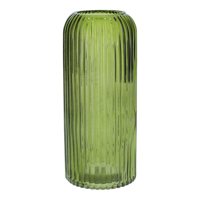 ALBURGIS váza na květiny s drážkami, sklo, zeleno-čiré, 20cm, Ø8,7cm