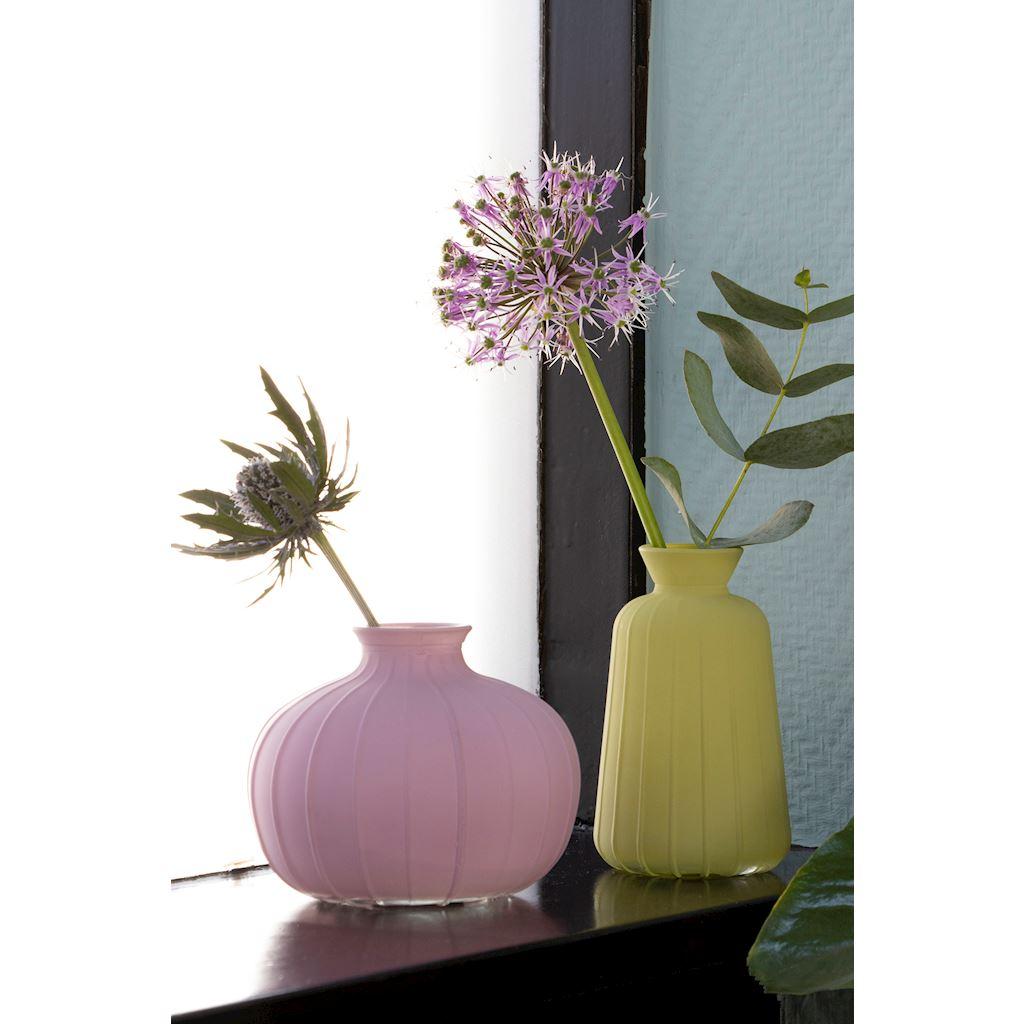 ALFHARD skleněná láhev s drážkami, fialová matná, 8,5cm, Ø10,5cm