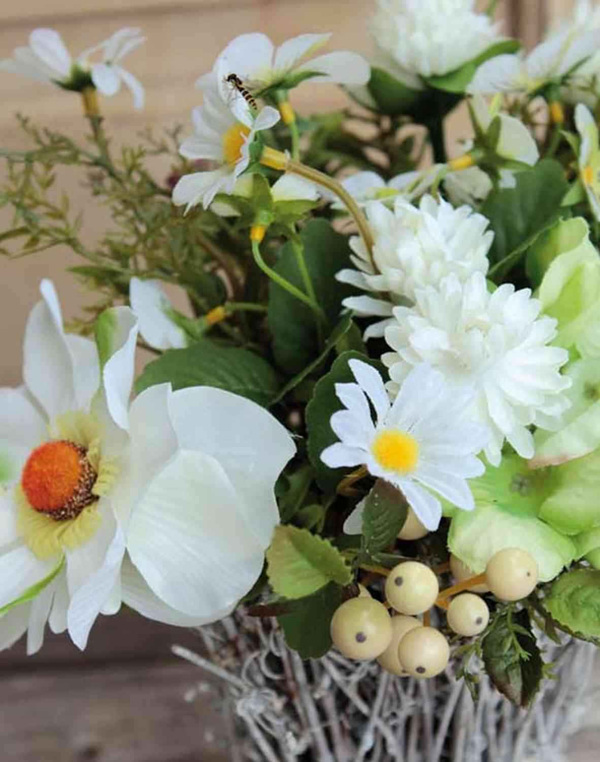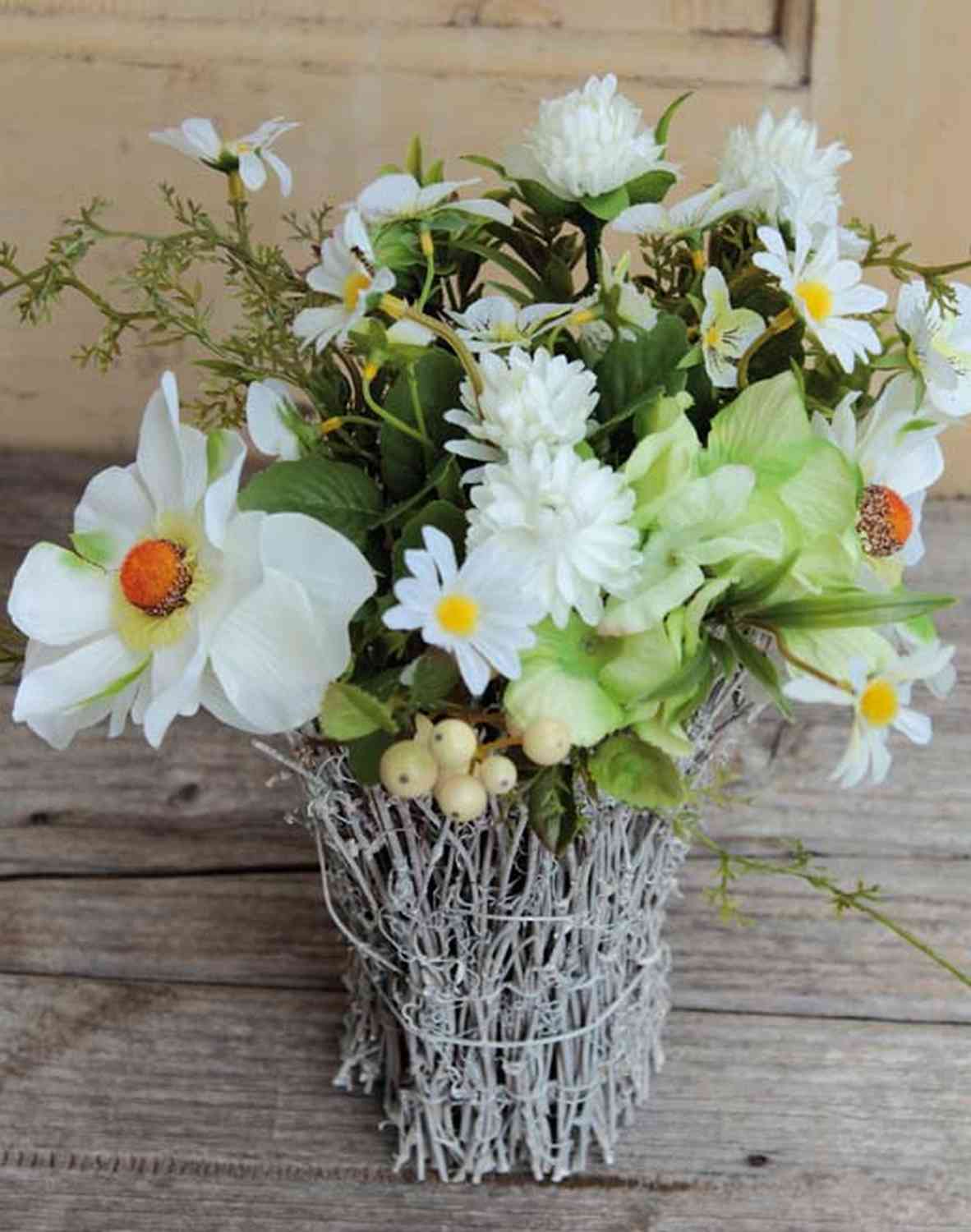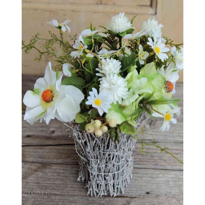 Art anemone Pensee aranžmá CHEYENNE, ratanový hrnec, bílý, 30cm