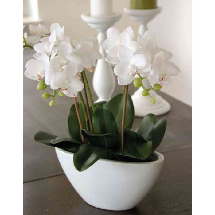 Art Phalaenopsis orchidej JASMIN v keramické misce, bílá, 40cm