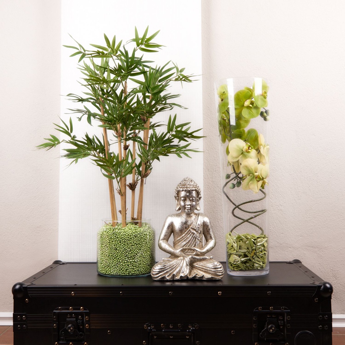Zelená jako oáza klidu! Nejen pandy milují bambus. To, co je pro přítulné medvědy svátkem, je pro nás lidi pastvou pro oči a vyzařuje z nich klid a spokojenost. Tento asijský vzhled se skvěle hodí do každého lázeňského prostoru. A oázu odpočinku vykouzlí i u vás doma v koupelně. Stříbrný Buddha v lotosové pozici s pozicí rukou, Dhyana Mudra, ztělesňuje hlubokou meditaci a ponoření se do vlastního tělesného středu. Kdo by si v ní nedokázal odpočinout? Nakupte si vzhled!
