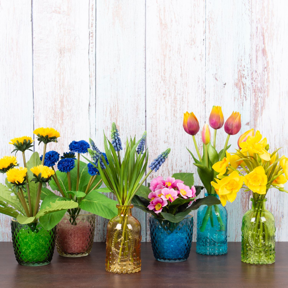 Barevné a veselé! Takto musí vypadat jaro. Barevné láhve a sklenice v kombinaci s typickými raně kvetoucími rostlinami rychle zaženou zimní blues. K této jarní výzdobě se hodí narcisy, tulipány, primulky, hyacinty, bledule a dokonce i pampeliška, která je vlastně považována za plevel. Jak krásně jaro září, vneste i vy do svého domova jasné barvy jara! Nakupte si vzhled!