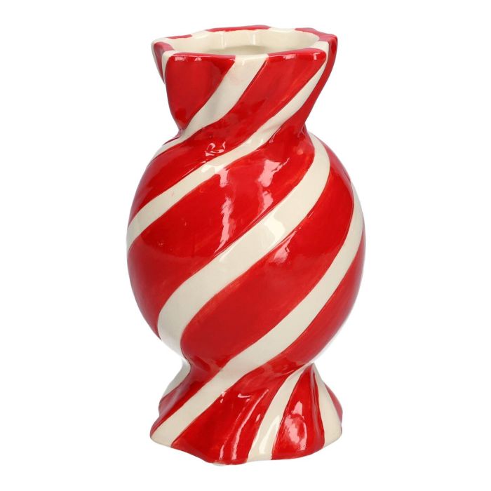 Bonbon AMIEL keramická baňatá váza na jednu květinu, s diagonálními liniemi, červenobílá, 15cm, Ø8,5cm
