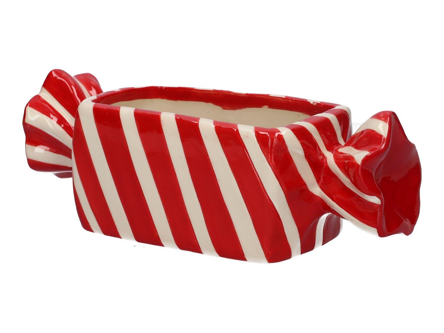 Bonbon AMIEL keramický květináč, s diagonálními čarami, červenobílý, 22,2x8,9x7,1cm