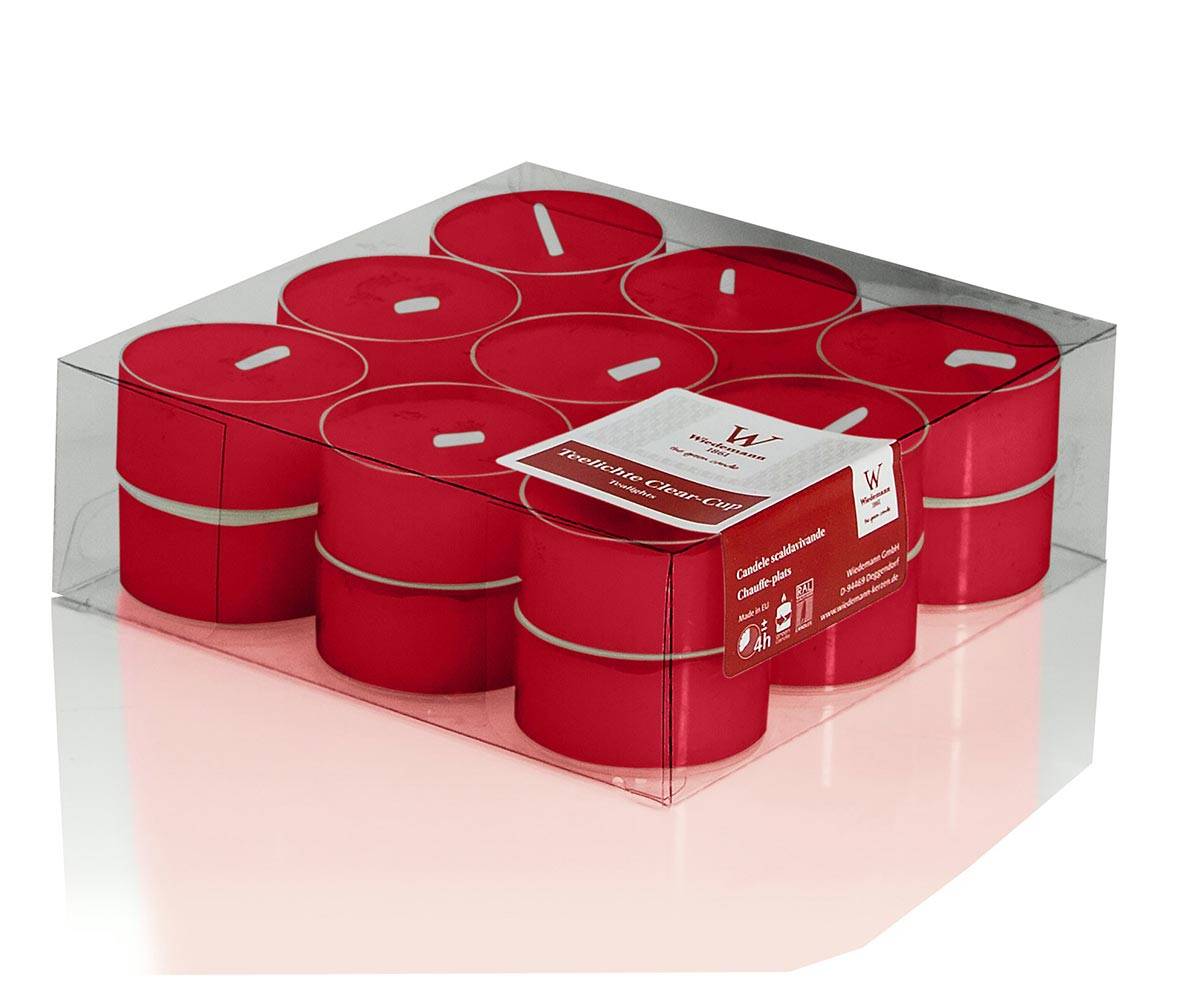 Čajové svíčky KENNY, 18 kusů, rubínově červená, 1,8cm, Ø3,8cm, 4h