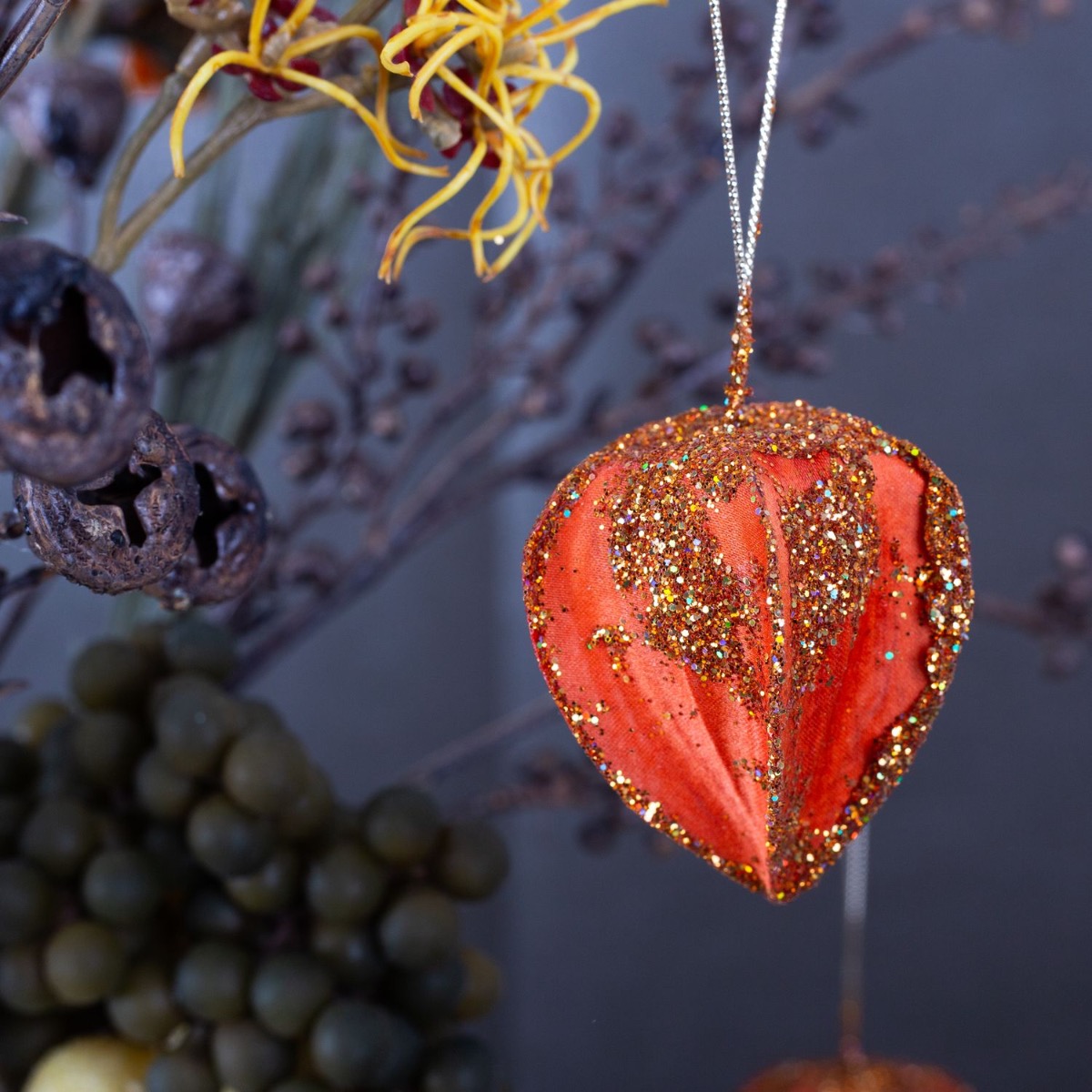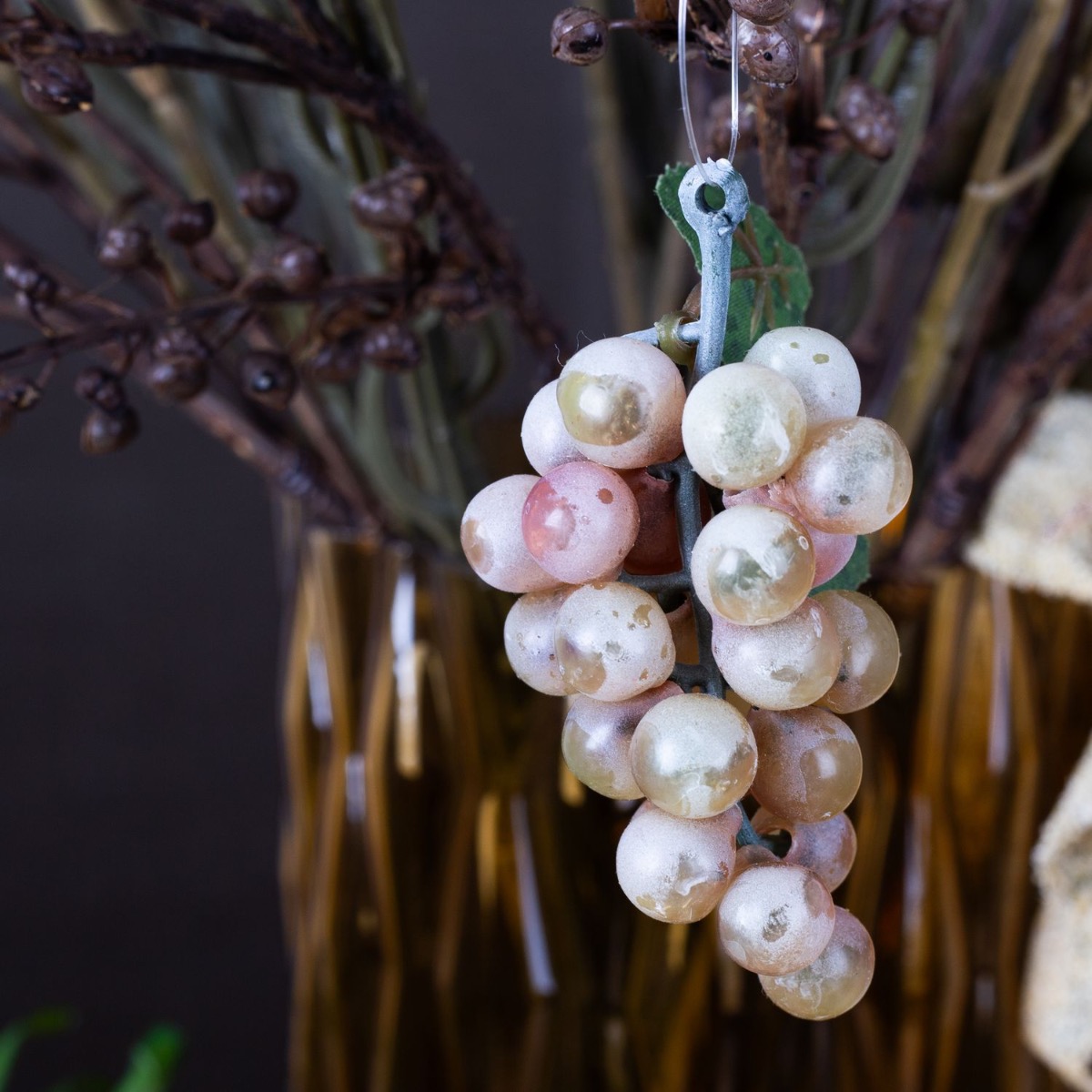 Designový tip: Květiny pro tuto vázu není třeba ani zkracovat a stačí je do vázy umístit podle potřeby. Dbejte na to, aby byly rovnoměrně rozložené. Na kytici zavěste physalis a malé ledové hrozny. Ujistěte se, že jsou i zde rovnoměrně rozloženy. Ozdobnou zeleninu rozdělte do malých skleniček a lahví. Tento vzhled je opravdu snadné znovu vytvořit!