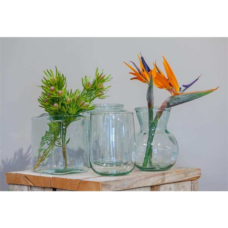 Čtvercová dekorativní váza LUNIK z recyklovaného skla, čirá, 13,5x13,5x17cm
