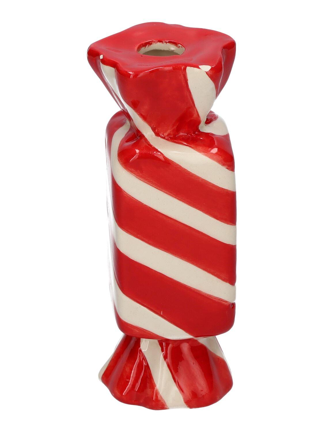 Čtvercová váza na jednu květinu Bonbon AMIEL z keramiky, s diagonálními liniemi, červeno-bílá, 4,5x4,5x11,5cm