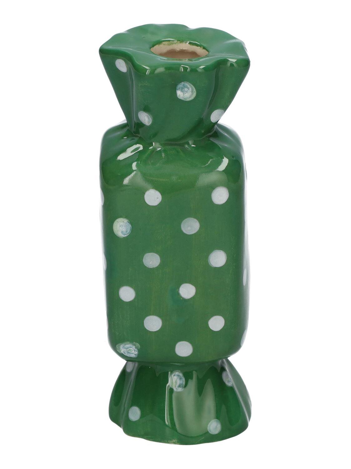 Čtvercová váza na květiny Bonbon AMIEL z keramiky, s tečkami, zelenobílá, 4,5x4,5x11,5cm