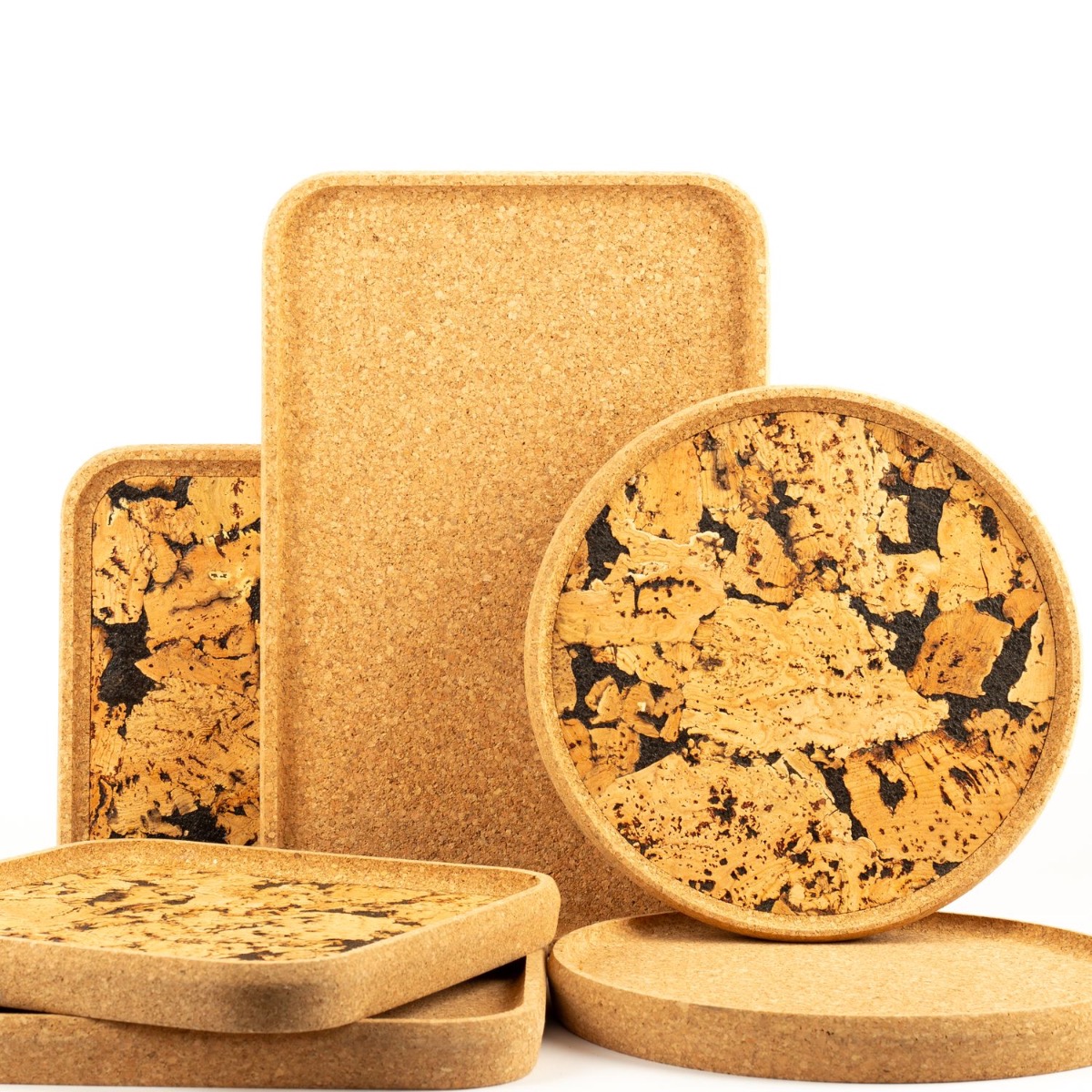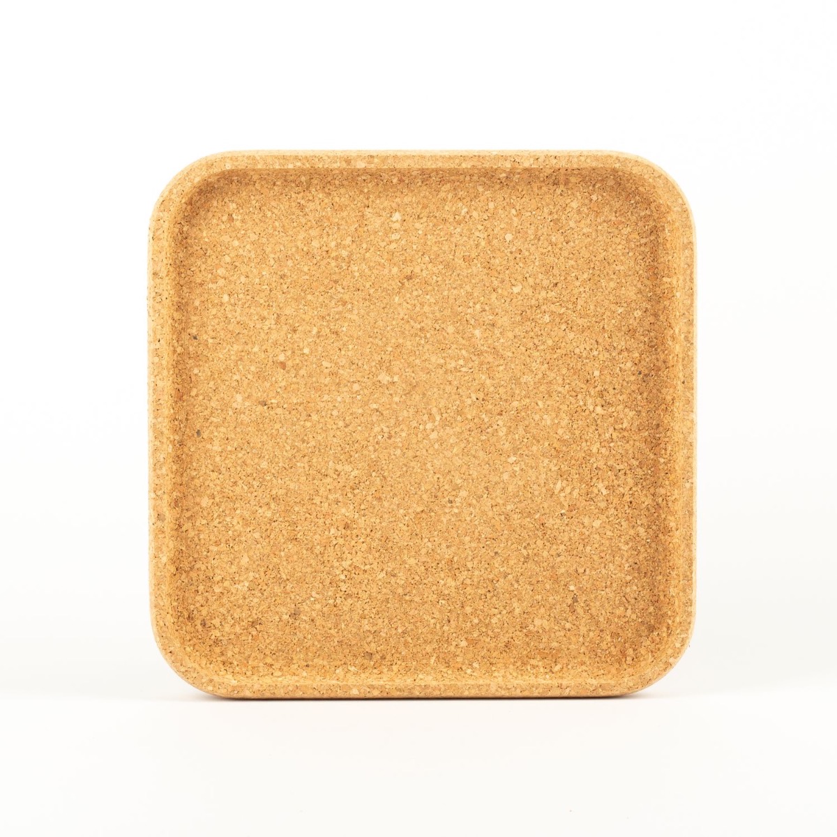 Čtvercový korkový podnos FUENTES z lisovaného korku, přírodní, 29x29x3cm, černá barva.