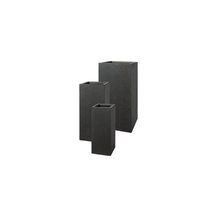 Čtvercový květináč KIRIMA, 3 kusy, sklolaminát, antracit, 20x20x50cm, 26x26x60cm, 33x33x70cm