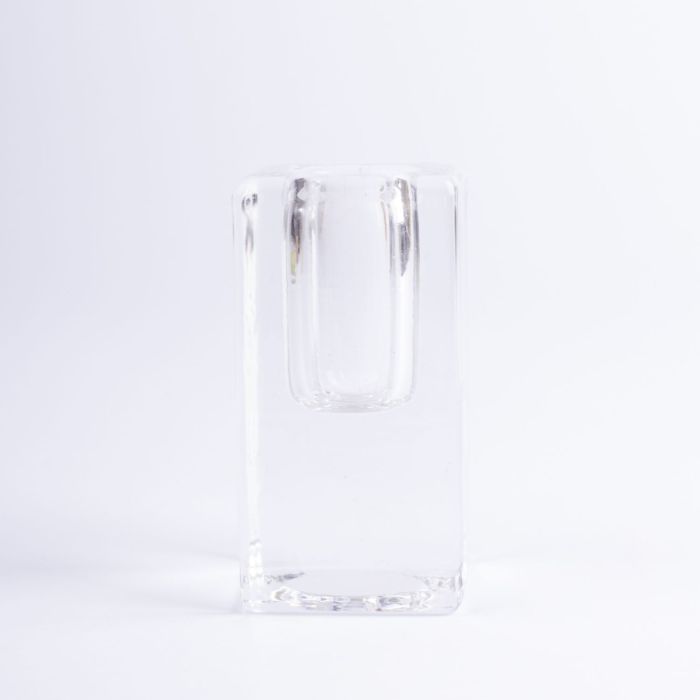 Čtvercový skleněný svícen SOLUNA na kuželové svíčky, transparentní, 4x4x9,8cm