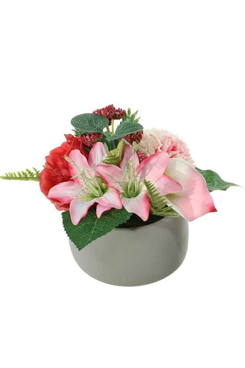 Dekorační aranžmá lilie, kaly, pivoňky a karafiátu ALFARA, dekorační květináč, růžovo-krémovo-červená, 19cm, Ø20cm