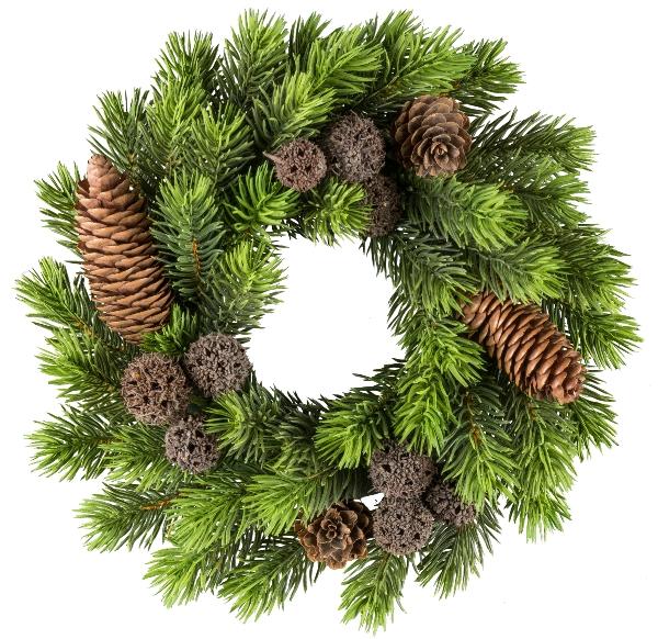 Dekorační jedlový věnec BAVRO se šiškami, zelený, Ø25cm
