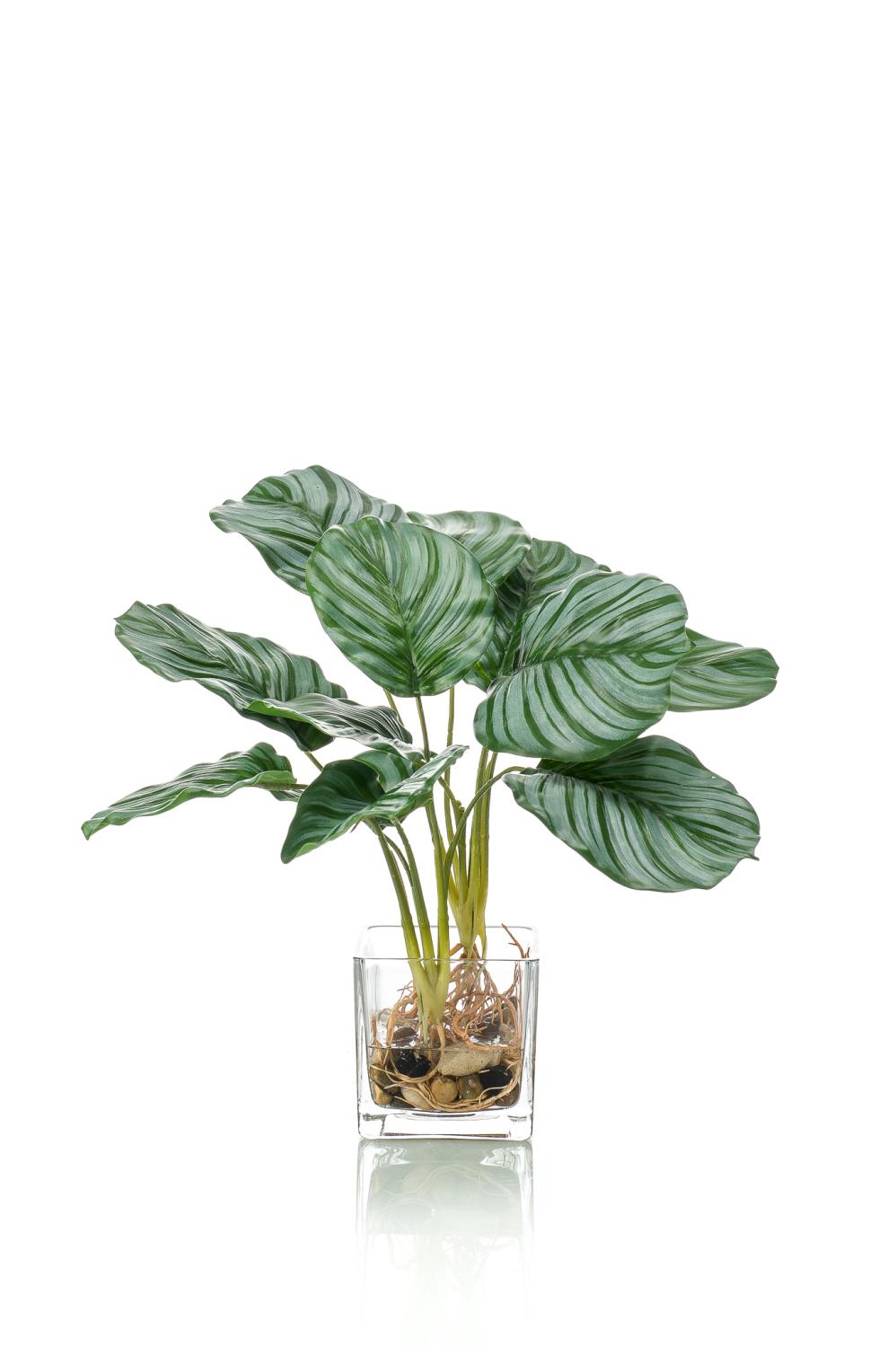 Dekorační kalatea orbifolia AGINA ve skleněném květináči, zelenobílá, 40cm