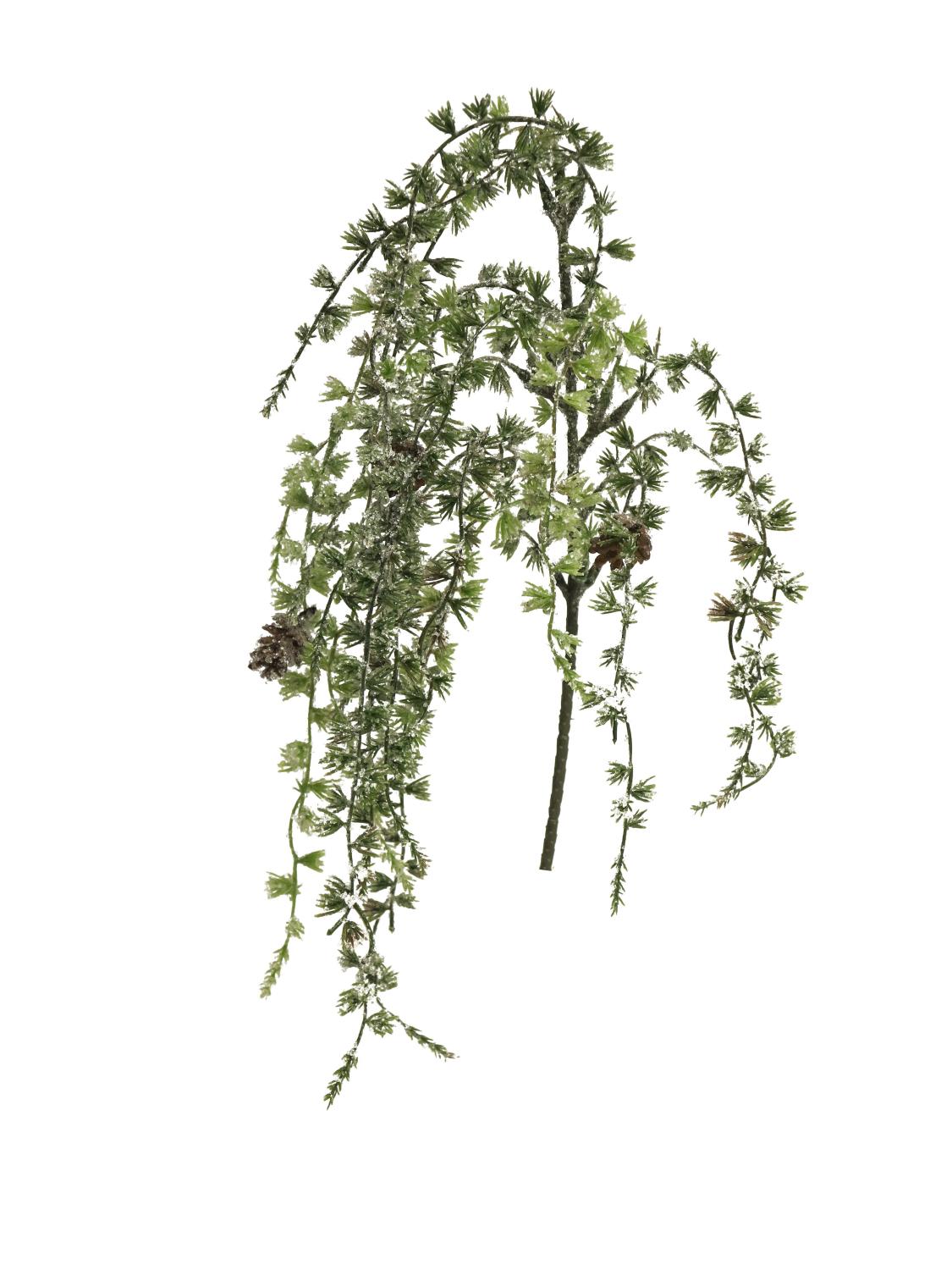 Dekorační modřínová větev NANZIA, zmrzlá, se šiškami, zelená, 80cm