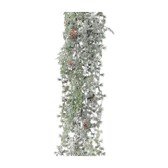 Dekorační věnec modřín WODRI, tyč, šišky, zmrzlý, bílo-zelený, 125cm