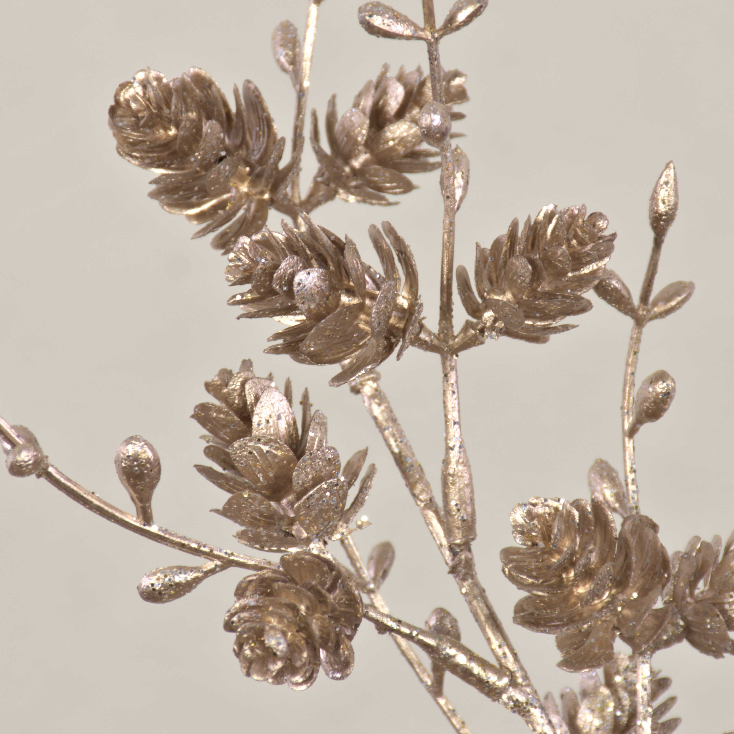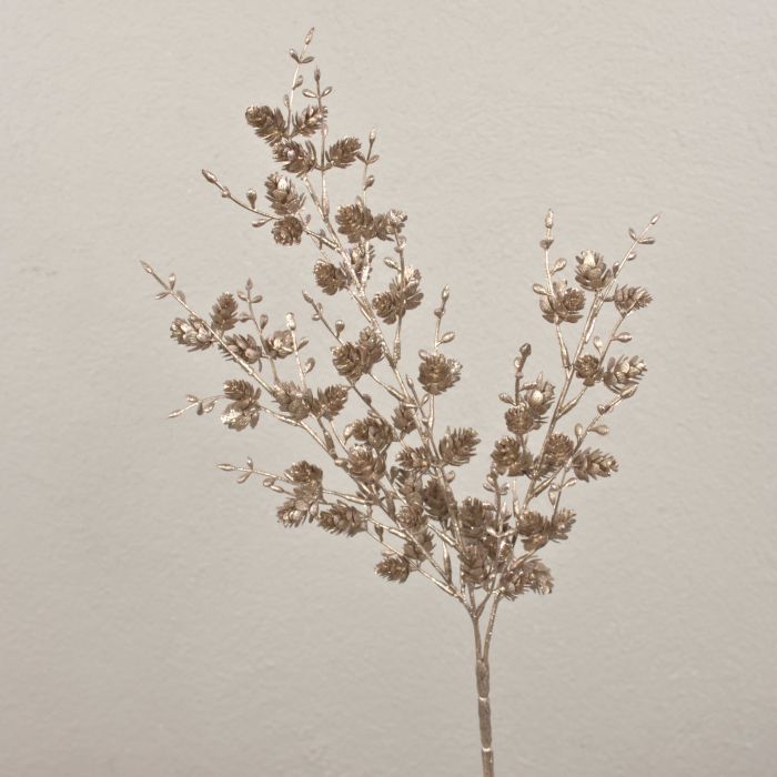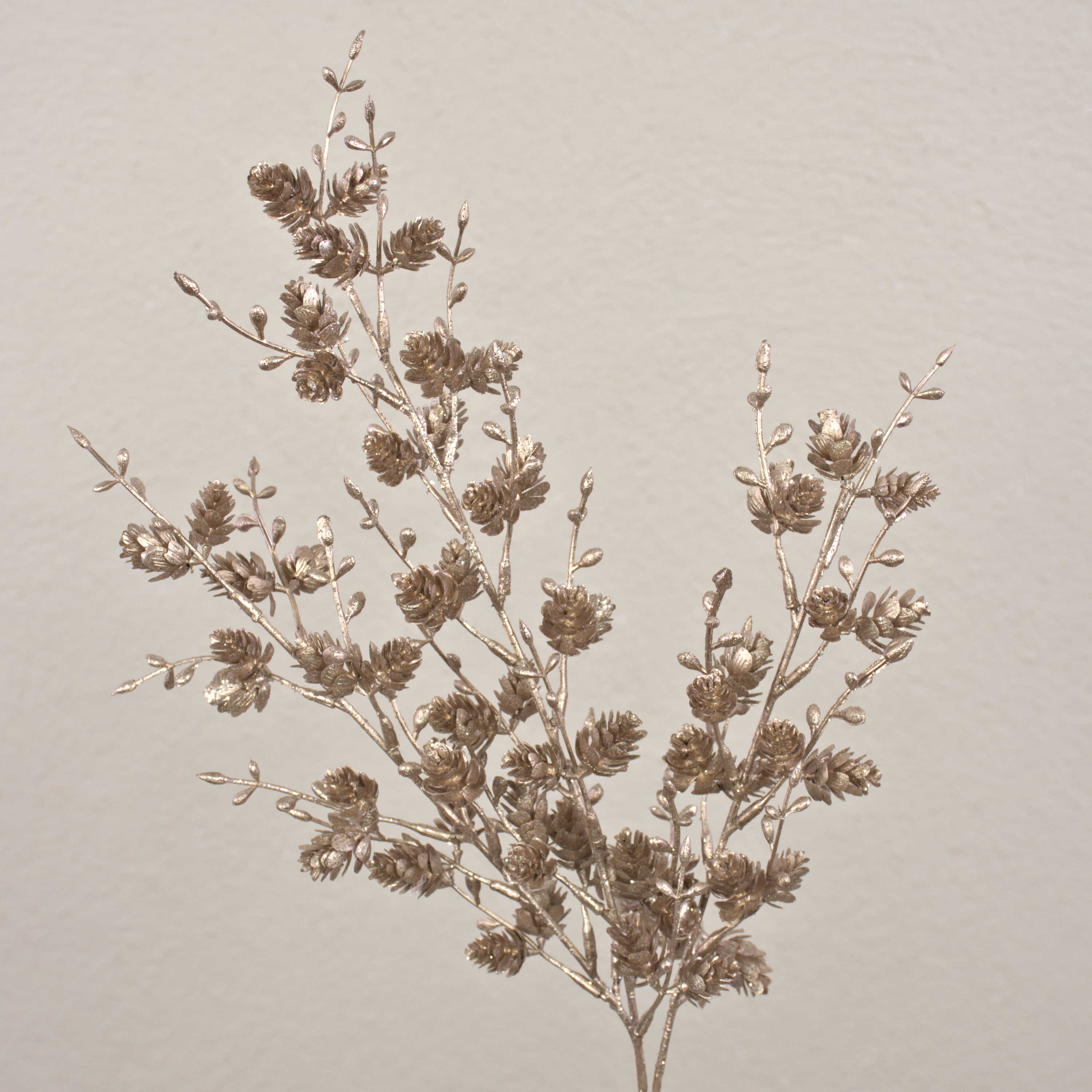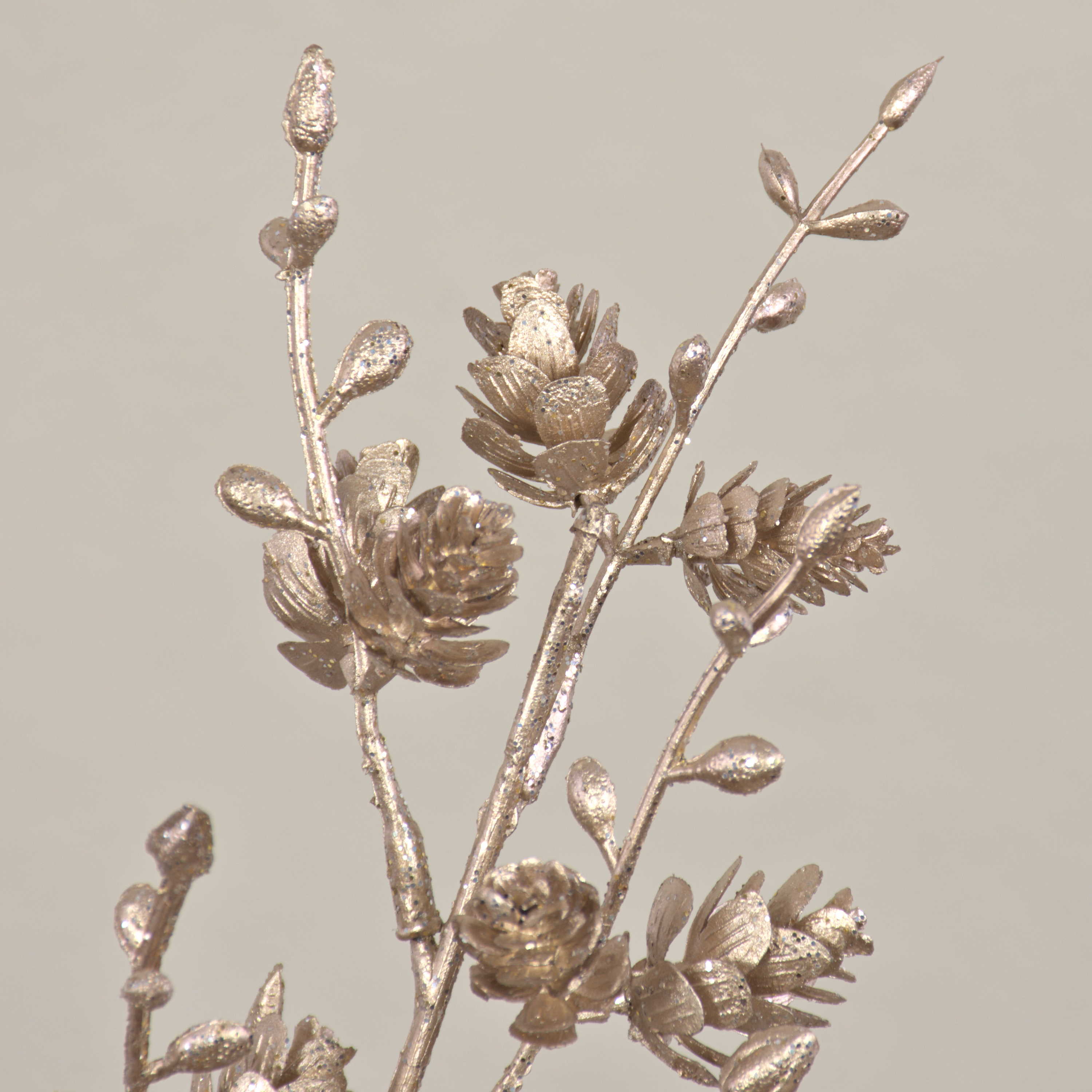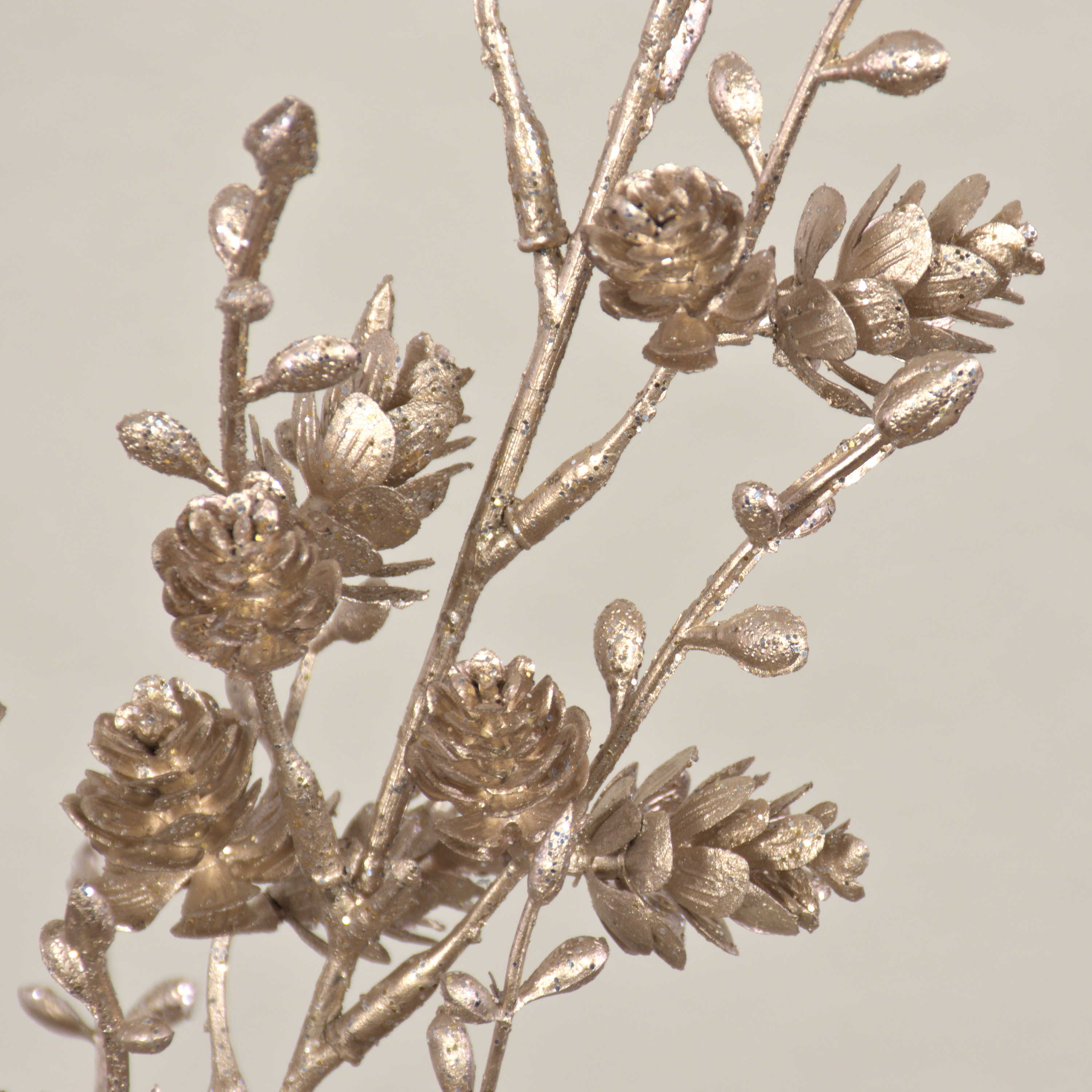 Dekorační větev borovice pinie EMERIC se šiškami, zlatá, 45cm
