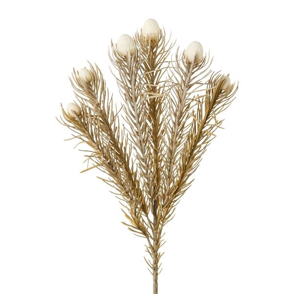 Dekorační větvička - polštářek Protea KROLI, krémově hnědá, 50cm