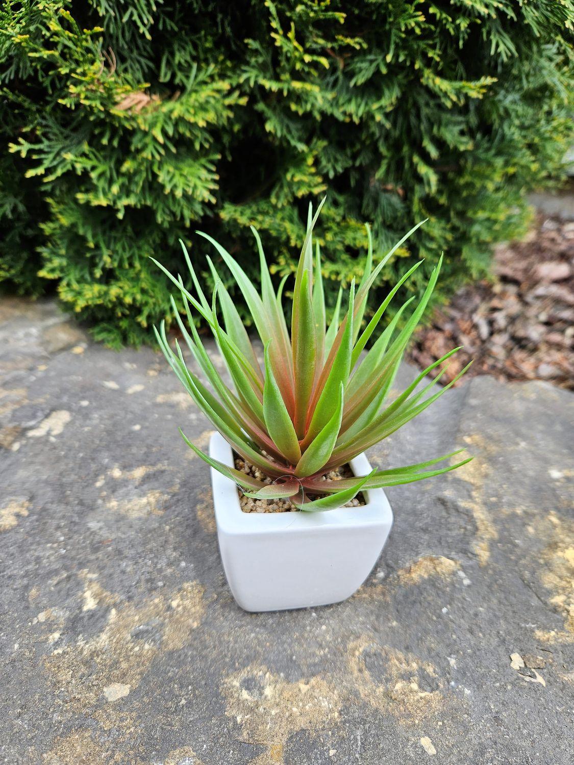 Dekorativní Agave decipiens KATNISS v keramickém květináči, zeleno-červená, 19cm