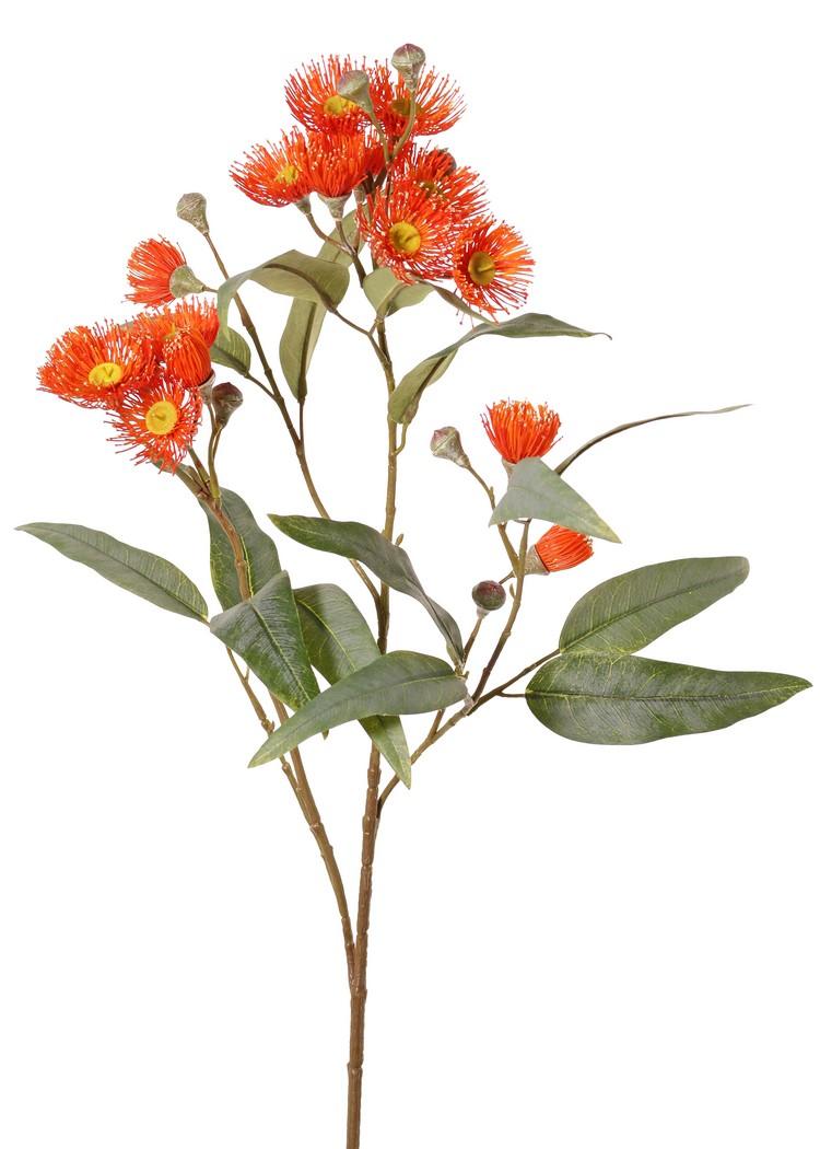Dekorativní eukalyptová větev WANARA s květy, oranžová, 100cm