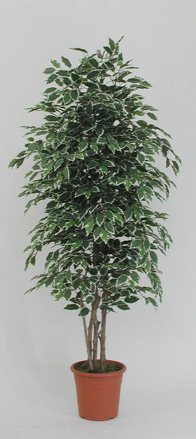 Dekorativní fíkus Benjamini KONRADE, pravé kmeny, zelenobílý, 100 cm - vyrobeno v Itálii