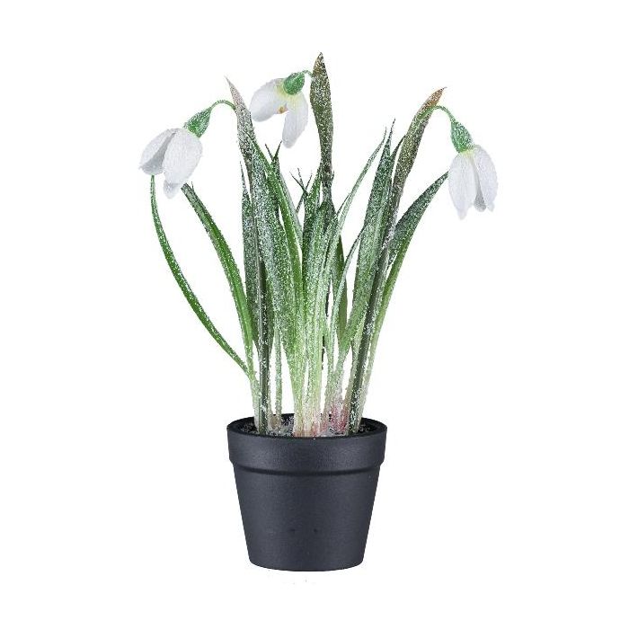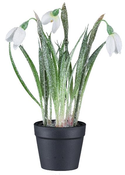 Dekorativní květ sněženky WASFA v dekorativním květináči, zasněžený, bílý, 20cm