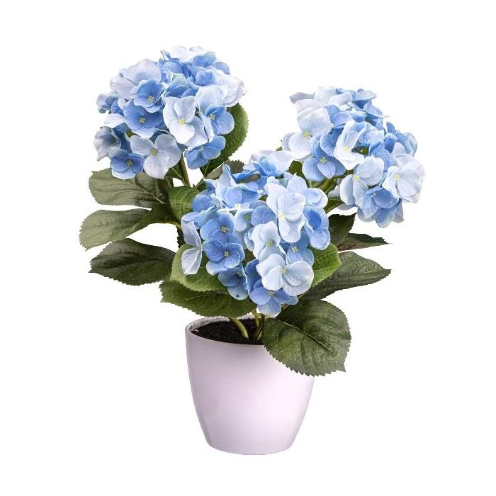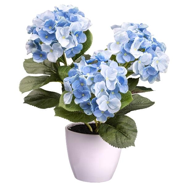 Dekorativní květina hortenzie SLORFIN v bílém dekoračním květináči, modrá, 30cm