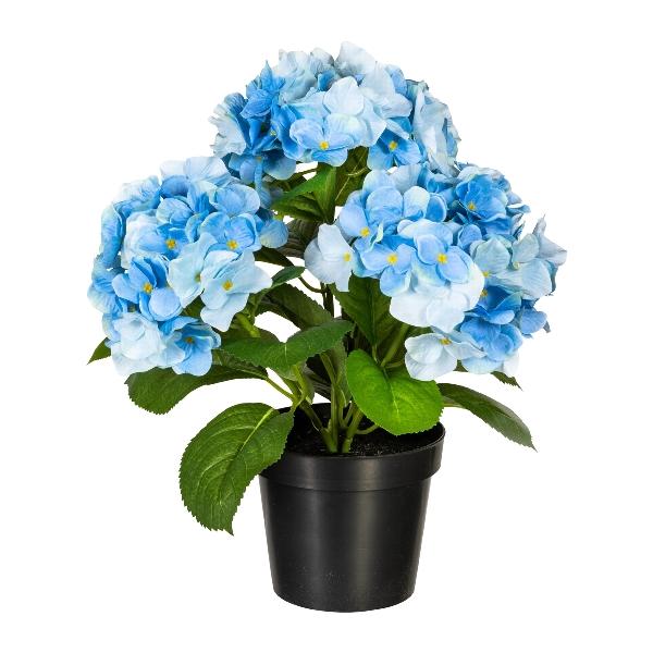 Dekorativní květina hortenzie SLORFIN v černém dekorativním květináči, modrá, 30cm