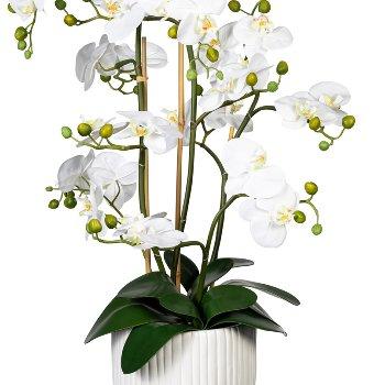 Dekorativní květina orchidej Phalaenopsis VELTORI, keramická váza, bílá, 110cm