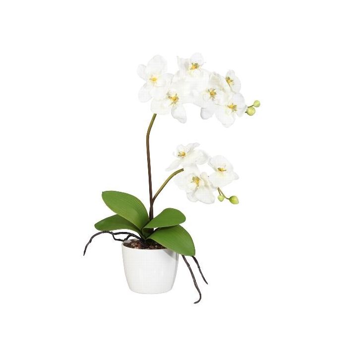 Dekorativní květina Phalaenopsis orchidej MORLEK, keramický květináč, kořeny, krémová, 60cm