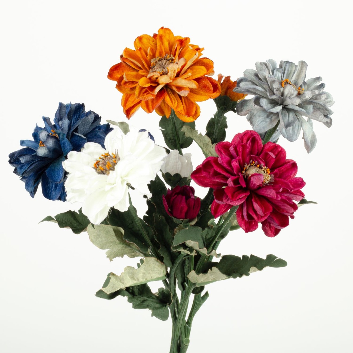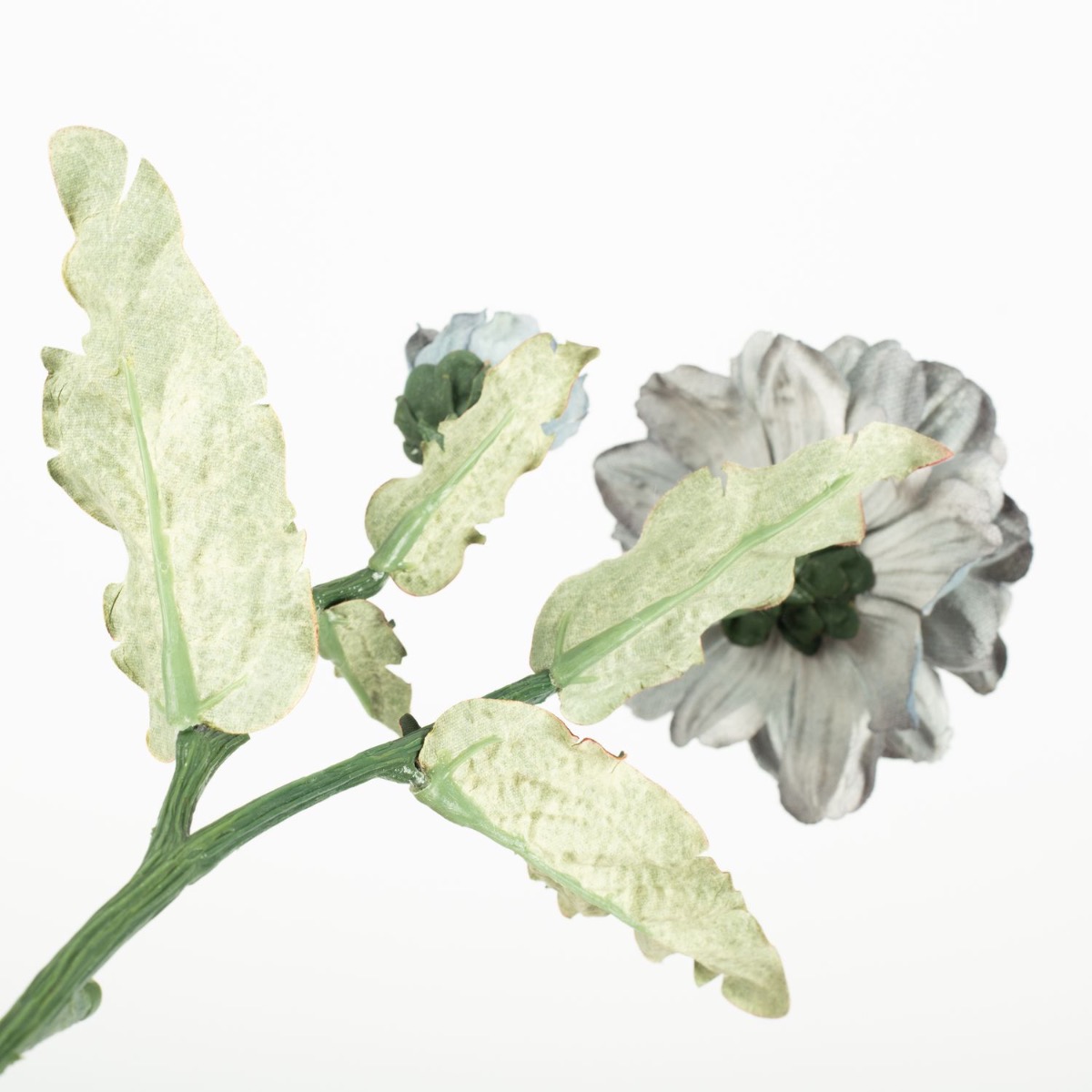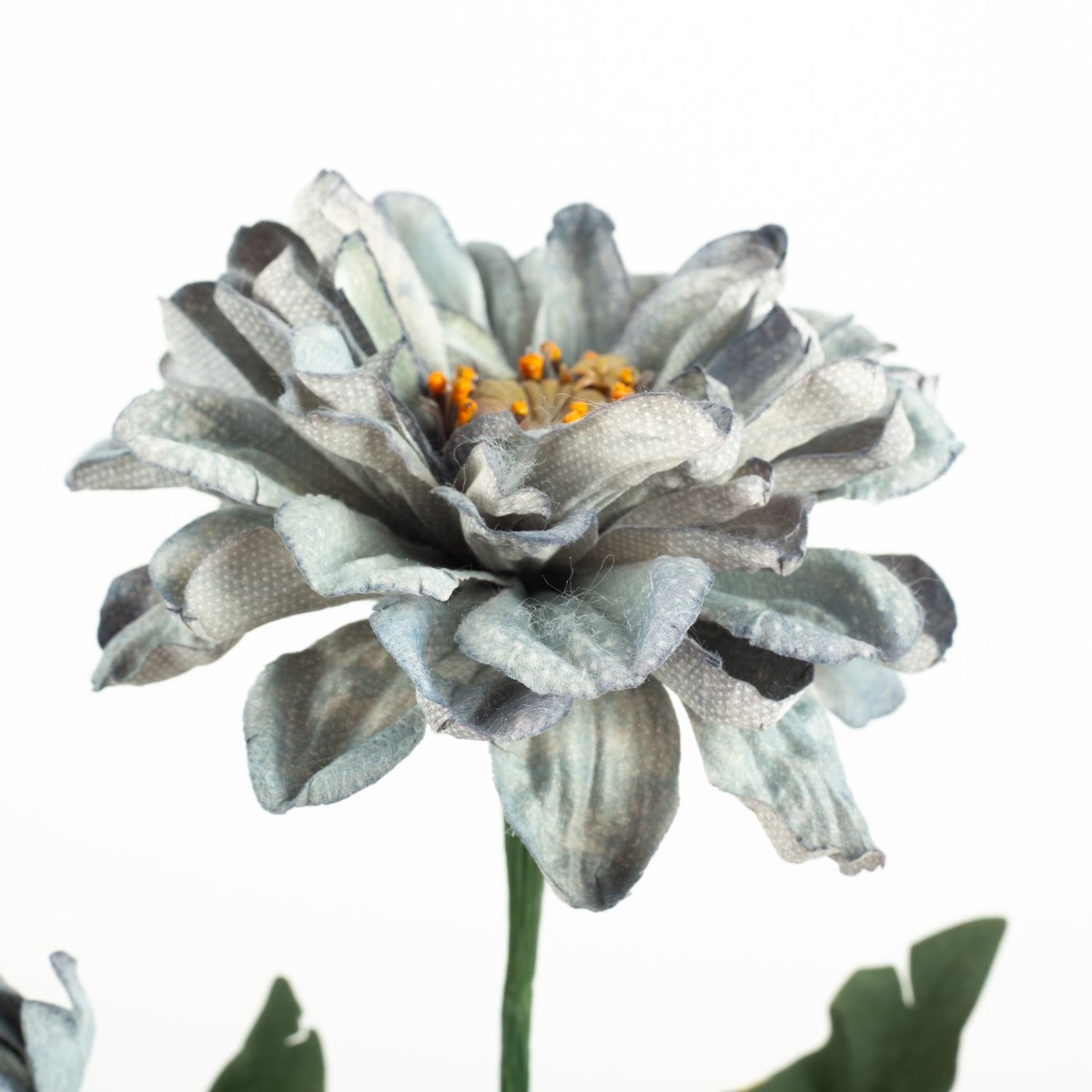 Dekorativní květinová ratolest zinnie GUNDISINE, Eco Collection, šedomodrá, 65cm, Ø9cm