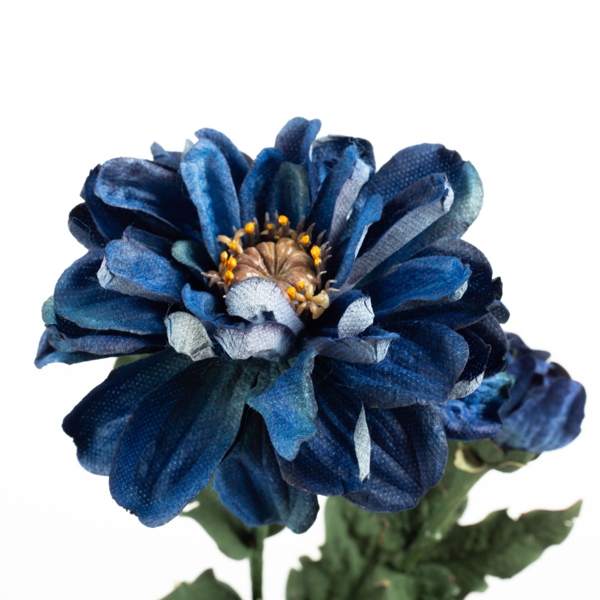 Dekorativní květinová větev zinnia GUNDISINE, Eco Collection, královsky modrá, 65cm, Ø9cm