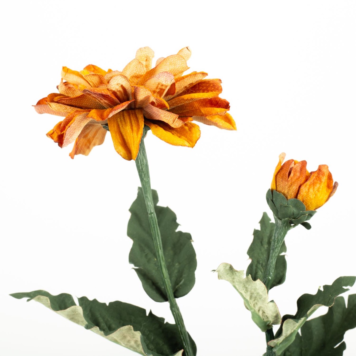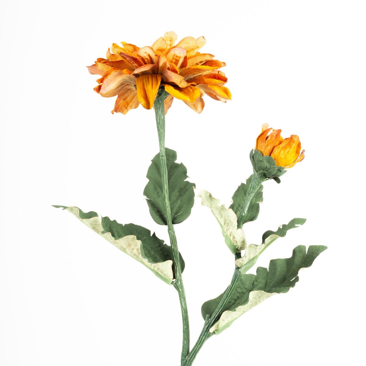 Dekorativní květinová větev zinnie GUNDISINE, Eco Collection, oranžovo-žlutá, 65cm, Ø9cm