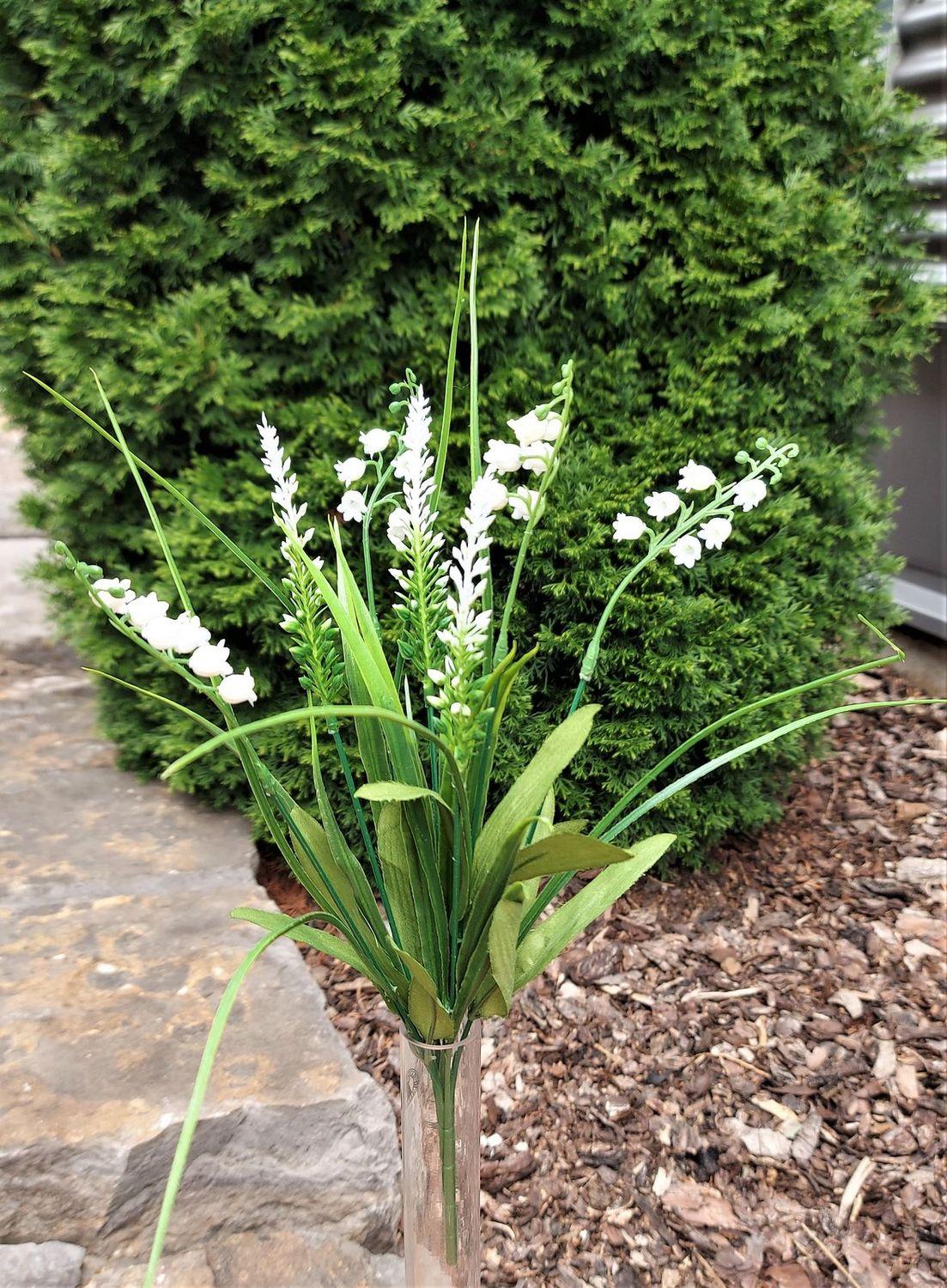 Dekorativní kytice SIVIKELO, konvalinka, levandule, tyčinka, bílá, 40cm
