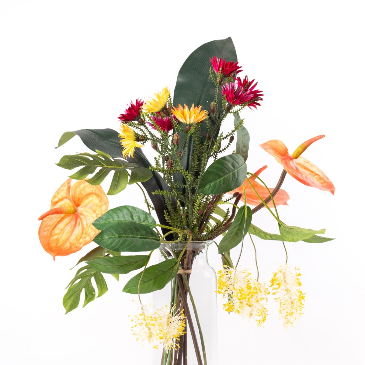Dekorativní letní kytice AVALU, oranžovo-zeleno-růžovo-žlutá, 75cm, Ø45cm