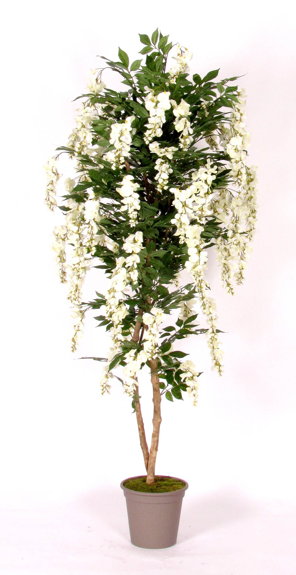 Dekorativní modrý déšť MALENKA, přírodní stonky, s květy, bílé, 175cm - Vyrobeno v Itálii