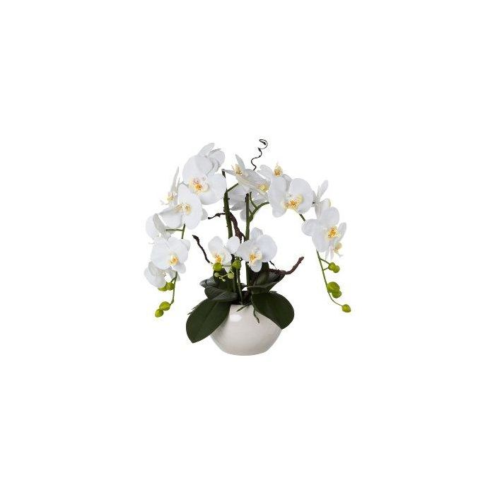 Dekorativní orchidej vývrtka vrbové aranžmá LULUDI, keramický květináč bílý, kořeny, bílá, 55cm