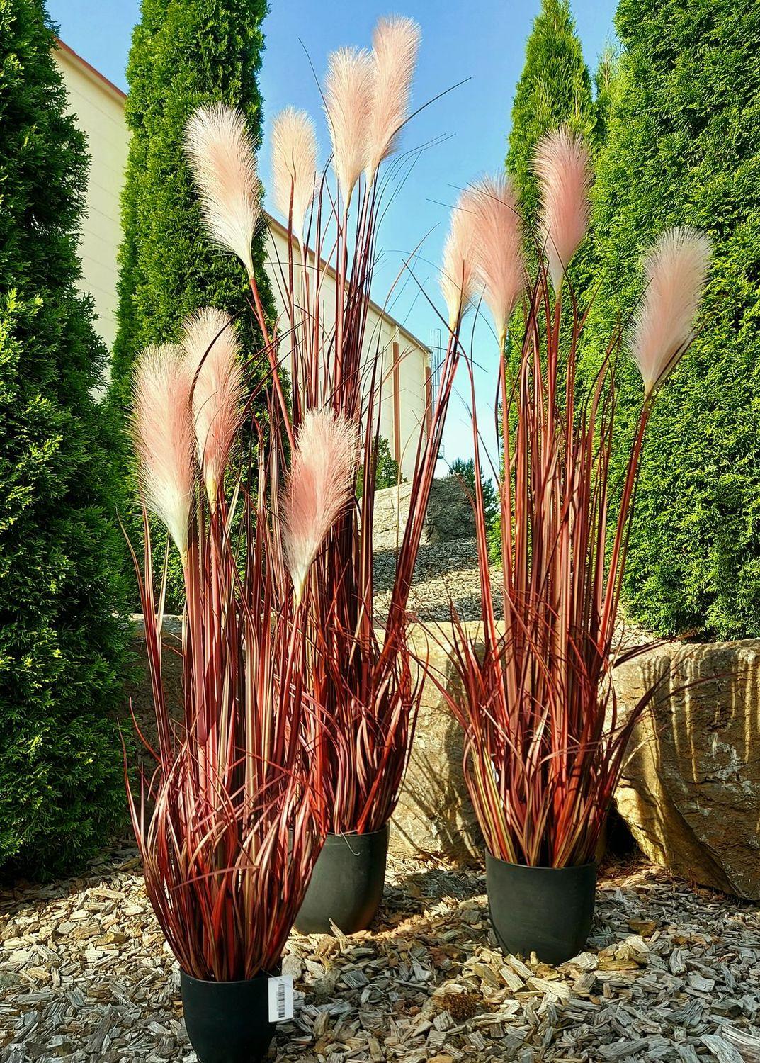 Dekorativní pampová tráva WERNHILD s laty, dekorativní květináč, červenohnědá, 90cm