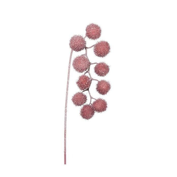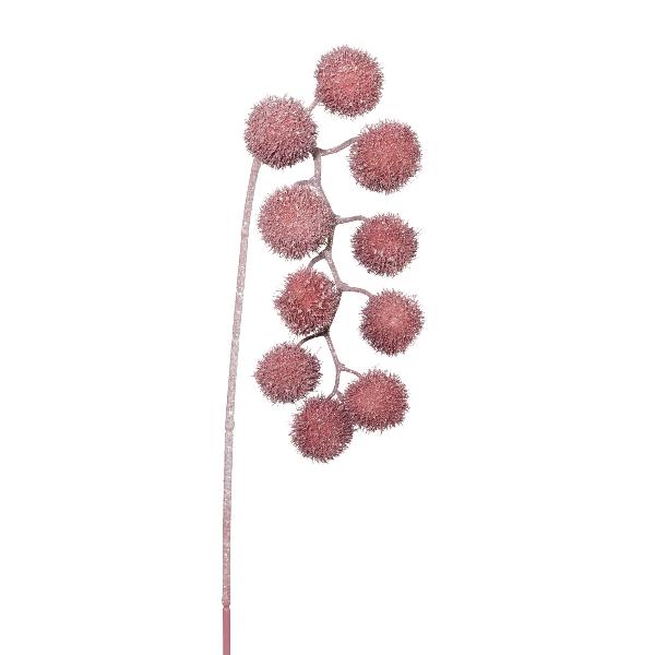Dekorativní platanová větev FLERMO s plody, závěsná, zmrzlá, tmavě růžová, 60cm