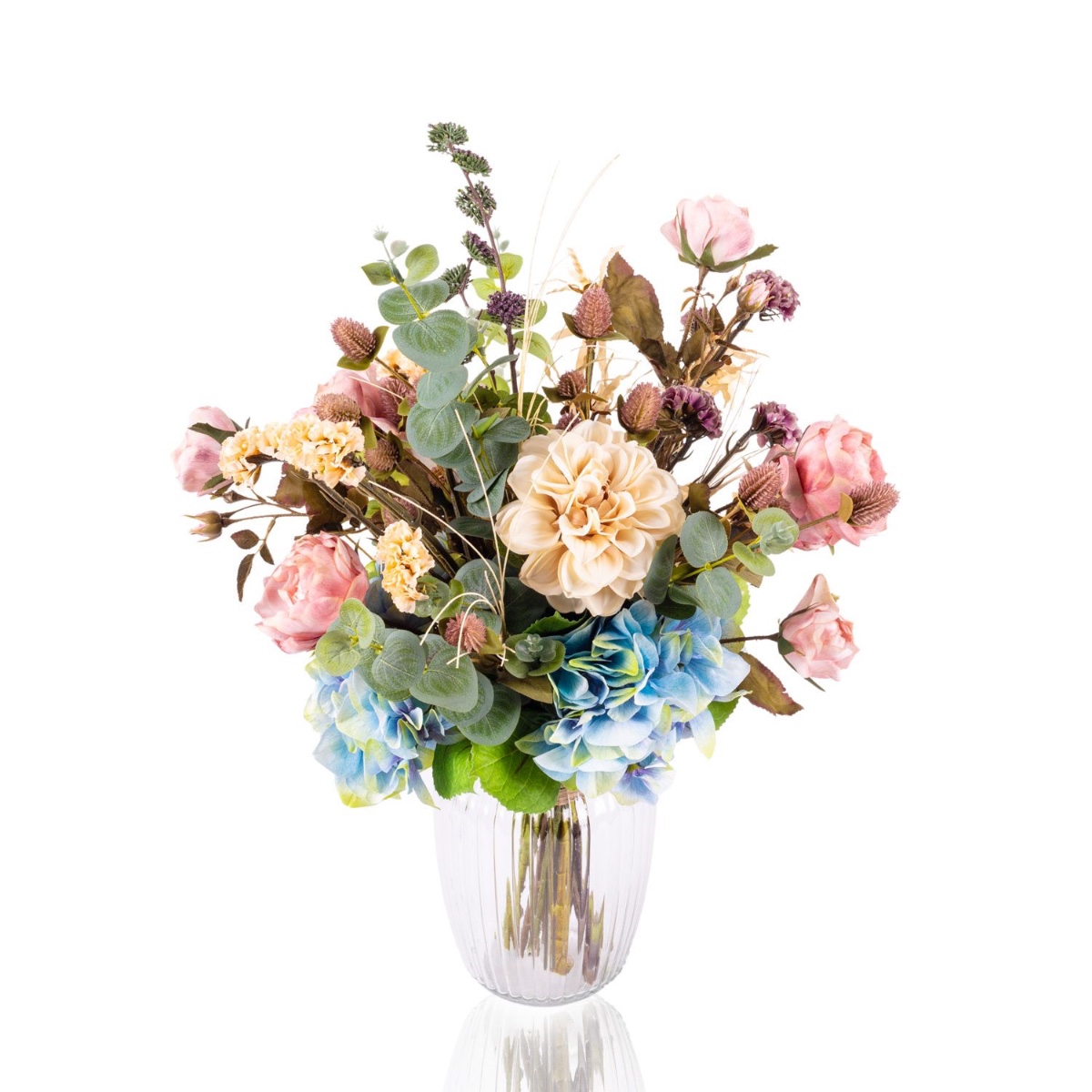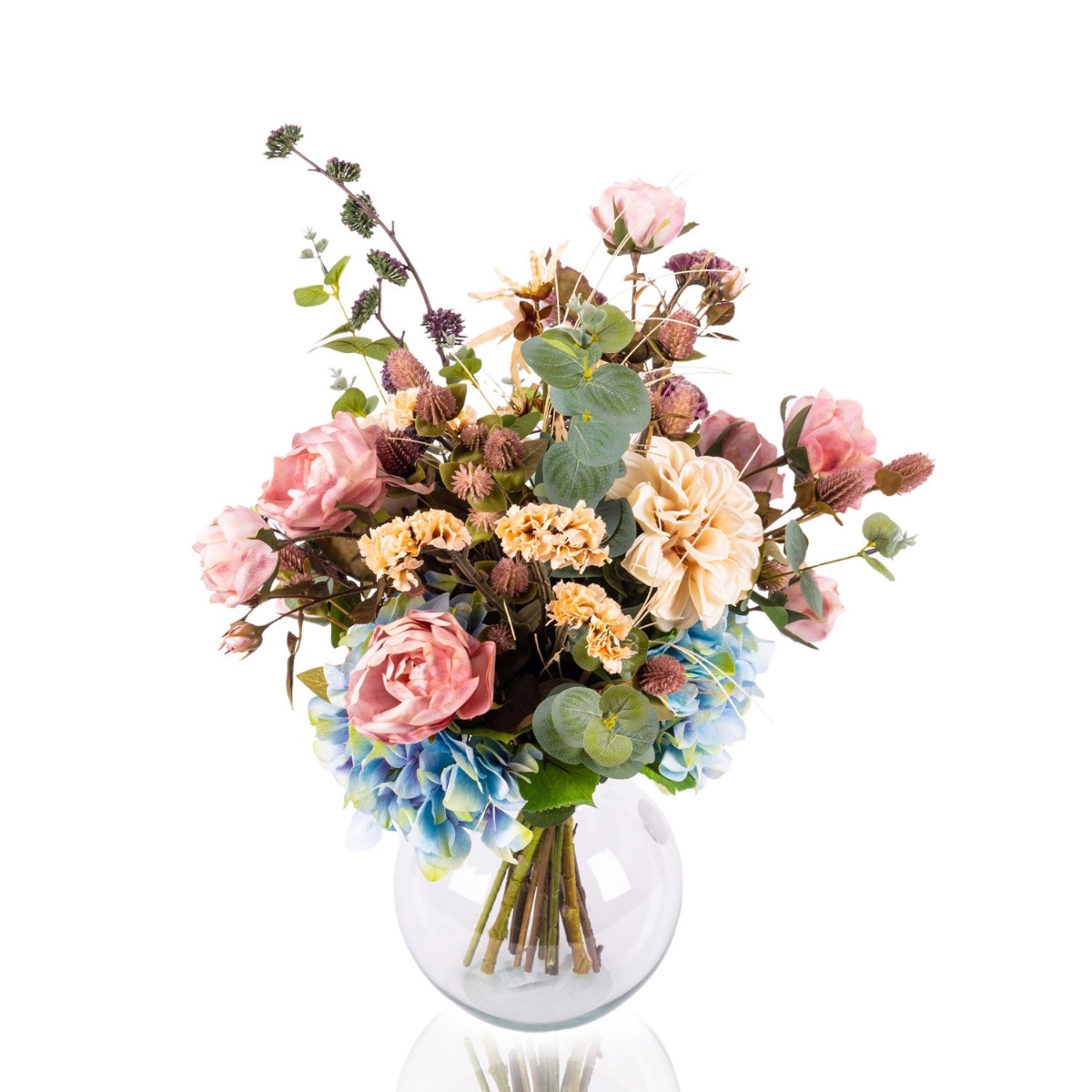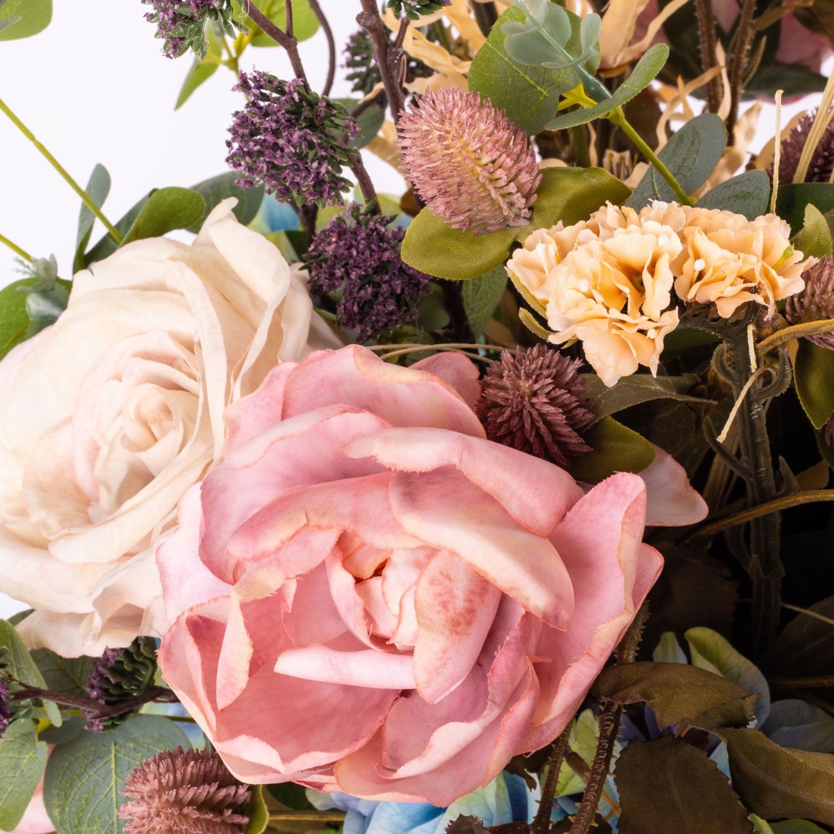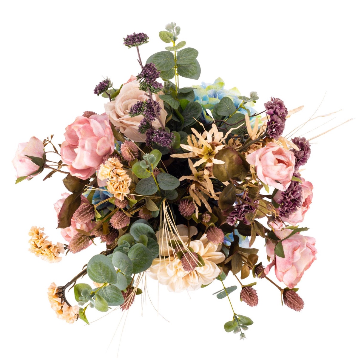 Dekorativní podzimní kytice TRIANA, modrofialovo-béžová, 50cm, Ø45cm