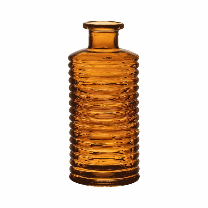 Dekorativní skleněná láhev STUART s drážkami, oranžovo-hnědo-čirá, 21,5cm, Ø9,5cm