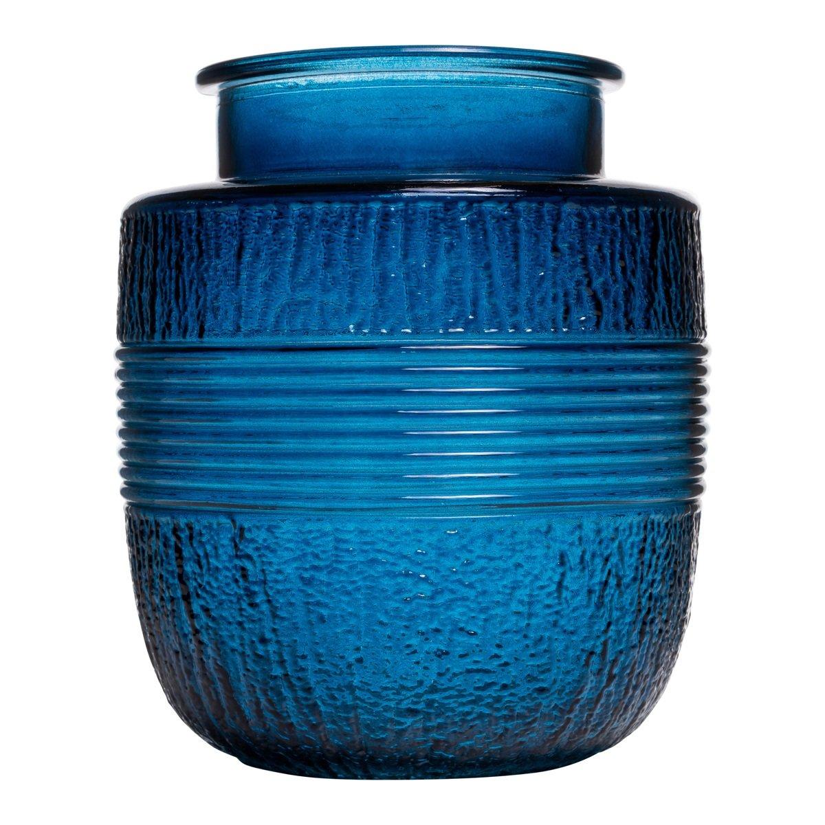 Dekorativní skleněná váza MARISELA s ozdobným okrajem, modročirá, 18cm, Ø15,5cm