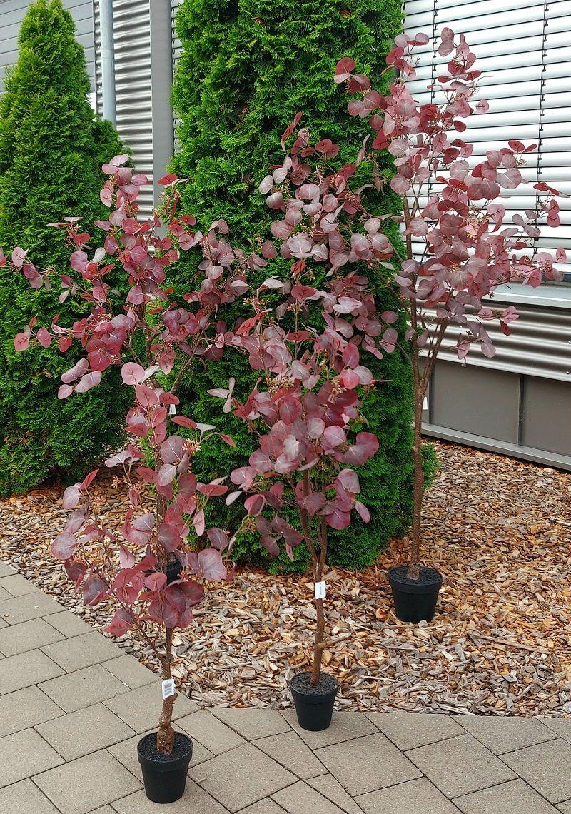 Dekorativní strom eukalyptus WISCHERA, ovoce, umělý kmen, dekorativní květináč, vínově šedá, 150cm