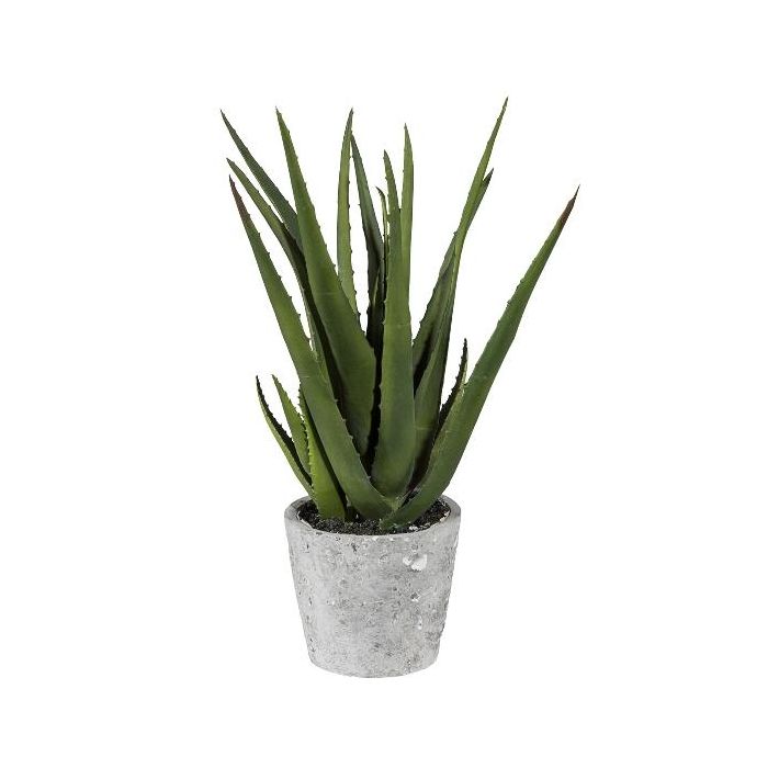 Dekorativní sukulent Aloe vera BRIZE v cementovém květináči, zelenožlutý, 40cm